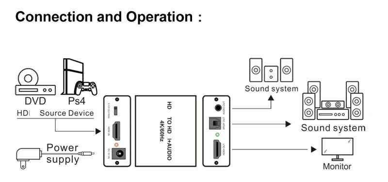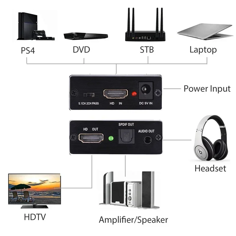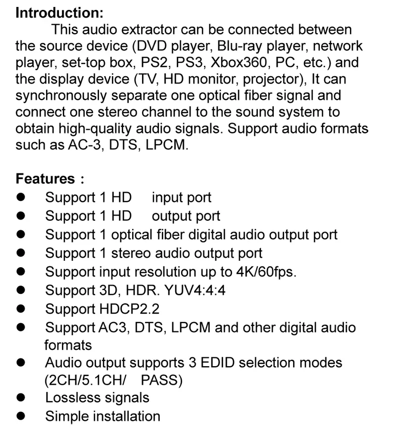 Comprar 4K 60Hz HDMI2.0 HDR SPDIF Extractor de Audio convertidor de vídeo para PS3 PS4 DVD portátil PC ordenador a TV proyector amplificador altavoz