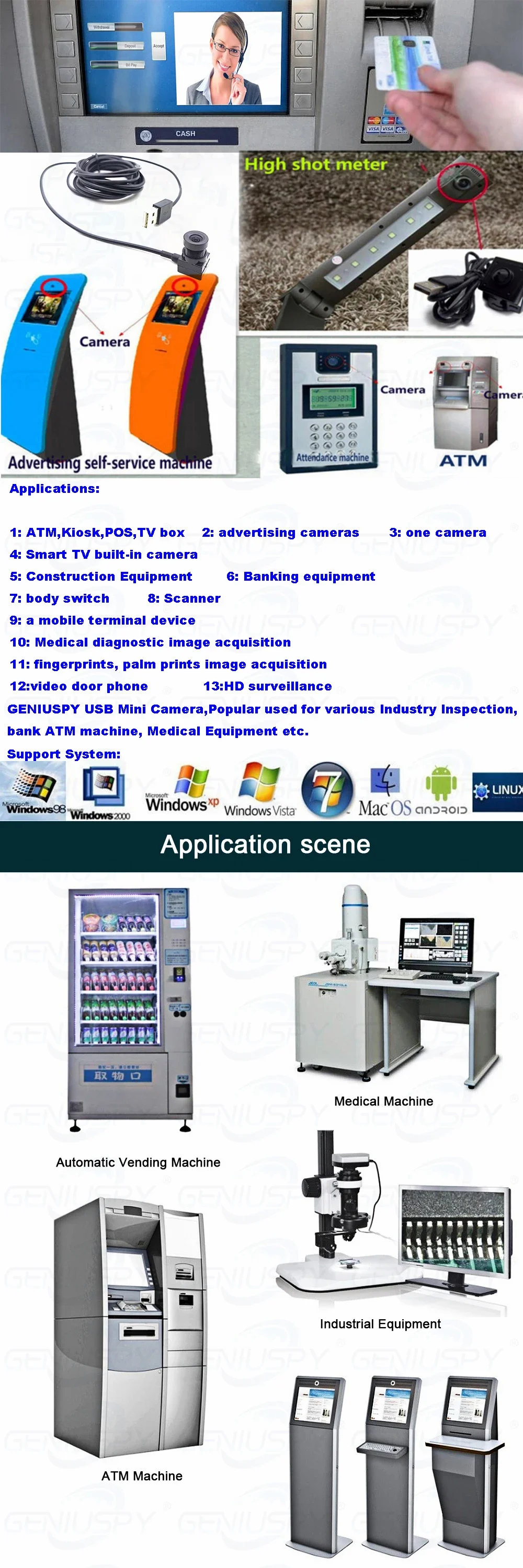 Aplicación típica1: cajero automático, quiosco, POS, TV box 2: cámaras publicitarias 3: una cámara 4: cámara integrada Smart TV5: Equipo de construcción 6: Equipo bancaria 7: interruptor corporal 8: Escáner9: un dispositivo terminal móvil 10: Adquisición de imágenes de diagnóstico médico 11: Adquisición de imágenes de huellas dactilares, huellas de palmas12: videoportero 13: vigilancia HDDescripción del parámetro:Tamaño de la lente: 1/2,7 pulgadas Tamaño de píxeles: 3um Píxeles efectivos máximos: 1920 (H) X1080 (V) Formato de imagen de salida: YUV2 (YUYV) / MJPEG Velocidad de fotogramas: 640X480 @ 30 fps MJPEG, 1280X720 @ 30 fps MJPEG, 1920X1080 @ 30 fps MJPEG YUV2,640X480 @ 20 fps YUV2,1280X720 @ 5 fps YUV2,1920X1080 @ 5 fps YUV2 Relación señal-ruido: 60 dB Rango dinámico: 69dB Sensibilidad: 3,3 V/lux-sec@550 nm Iluminación mínima: 0,01LUX Tipo de obturador: Obturador/exposición de marco enrollable electrónico Tipo de interfaz: USB2.0 de alta velocidad Admite protocolo de inundaciones gratuitas: USB Video Class (UVC) Admite protocolo OTG: USB2.0 OTG Control automático de exposición AEC: soporte Balance de blancos automático AEB: soporte Control automático de ganancia AGC: soporte Parámetros ajustables: brillo contraste saturación de color resolución de tono El contraste de exposición gamma gana retroiluminación del balance de blancos Fuente de alimentación: USB BUS 4P-2.0mm Enchufe de alimentación Voltaje de funcionamiento: DC5V Corriente de trabajo: 140 mA ~ 220 mA Temperatura de trabajo: 0 ~ 60 Temperatura de almacenamiento: -20 ~ 70 C Tamaño del tablero: 15X15mm Peso de la máquina: 50 g Sistema compatible: WinXP/Vista/Win7/Win8/Linux con UVC (por encima de Linux-2.6.26)/MAC-OS X 10.4.8 o posterior /Desde con UVC/Android 4 o con UVC superior