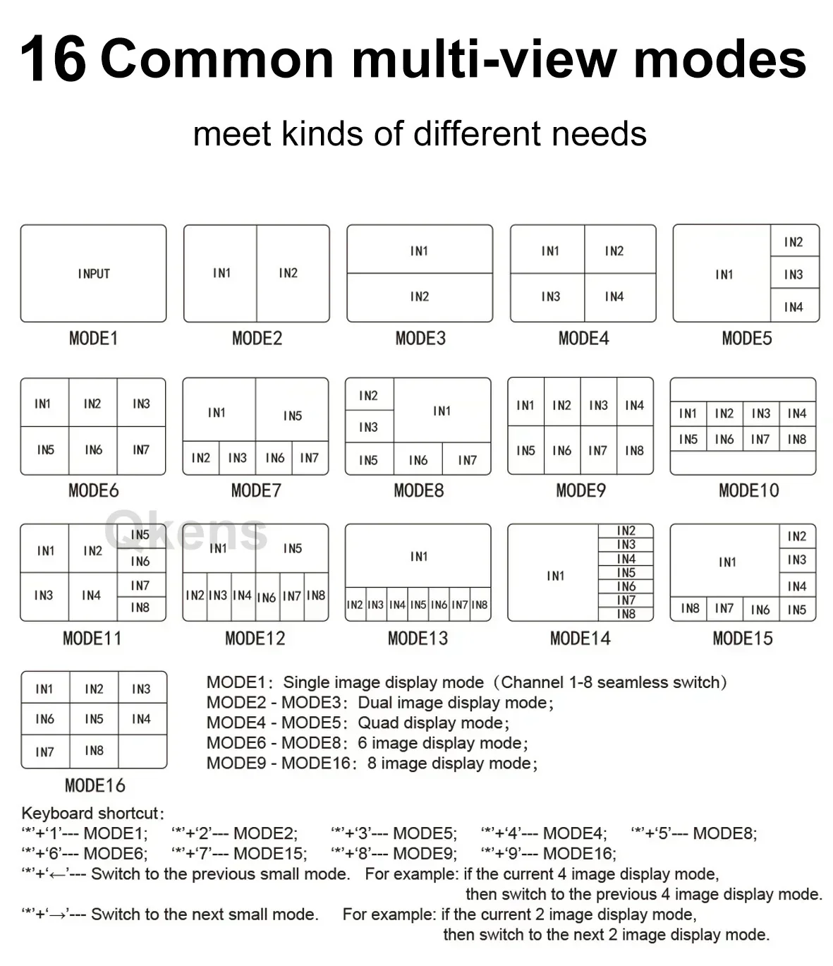 Nuevo y de alta calidad, ¡compre con confianza! Este multivisor HDMI 8x1 es un producto de alto rendimiento con segmentación de pantalla de 8 canales y sin interrupciones. salida de conmutación.Puede mostrar señales de vídeo digital HD de 8 canales en la misma pantalla y tiene una variedad de videos Modos de segmentación, conmutación perfecta de 8 señales de entrada HD de forma sincrónica.Es muy práctico y estable. Visión múltiple y fácil de instalar, se puede utilizar en proyectos importantes, salas de reuniones y otros lugares.