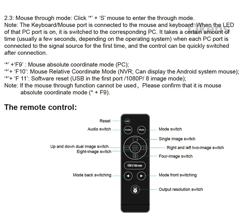 1.Visión múltiple HDMI 8x1 x1 2.Adaptador de corriente 12V/2A x1 3. Cable de extensión USB tipo A x8 4.Control remoto (sin batería) x1 5.Manual de usuario x1 6: cable RS232 x1 Sin caja de venta al por menor ni otros accesorios, si tiene alguna necesidad especial, contáctenos antes de realizar la compra.