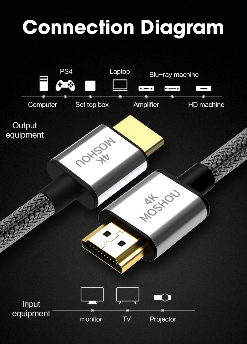 Comprar 4K HDMI 2.0b 2,0 Cable 4K @ 60Hz HDR ARC Video macho a macho para Apple TV PS4 NS proyector amplificador