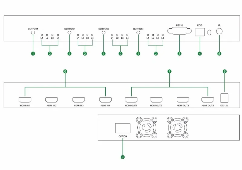 La matriz HDMI 4x4 tiene la capacidad de ecualización y amplificación para garantizar la transmisión de la señal HDMI