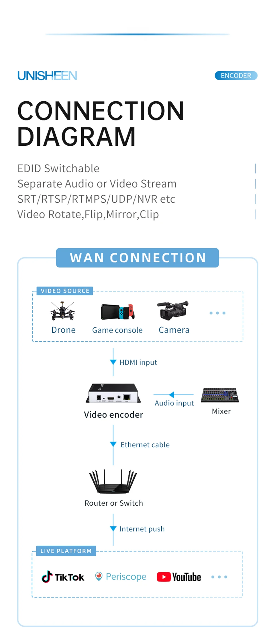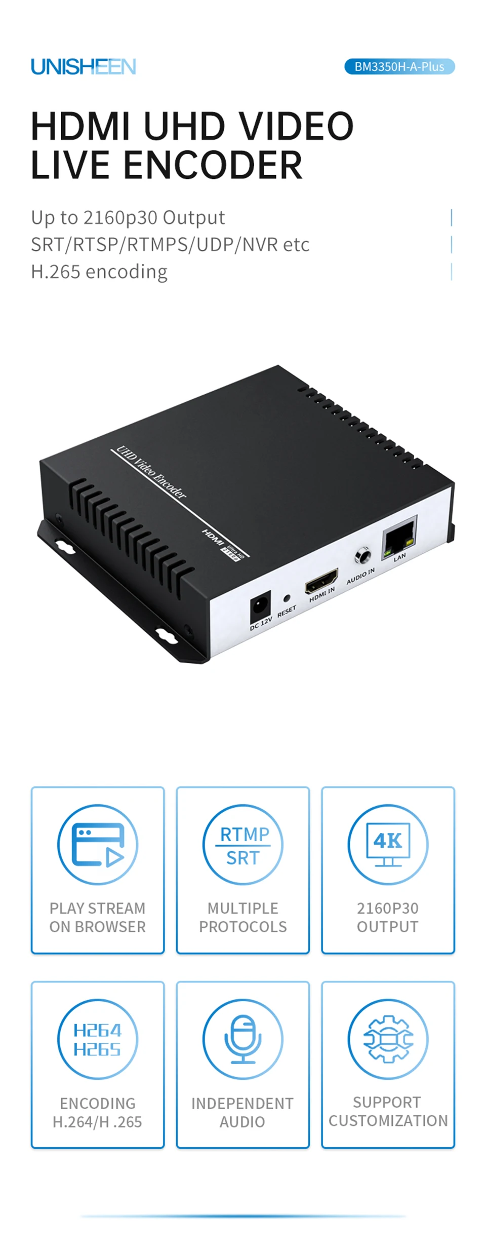 4K RTSP H265 H264 IPTV baja latencia Ip Rtmps transmisión en vivo SRT ONVIF IPTV HDMI UHD dispositivo codificador de vídeo