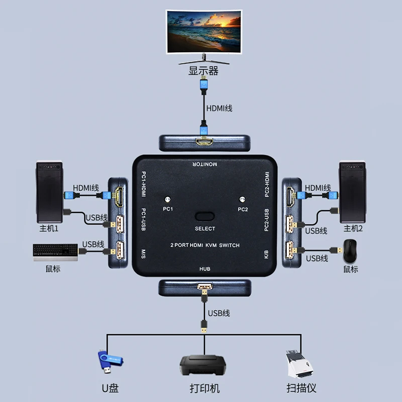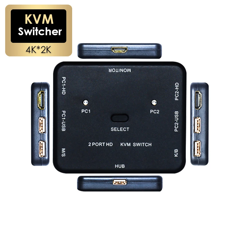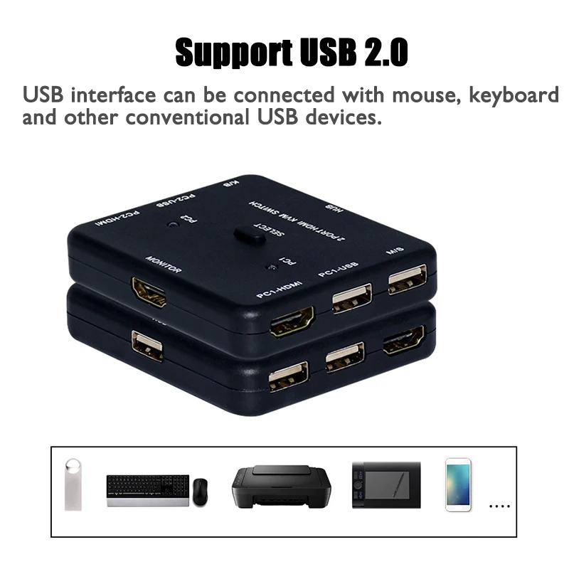 Comprar 4K x 2K 3D compatible con HDMI KVM USB 2,0 teclado ratón impresora Monitor Host HDTV PC Monitor compartir caja conmutador divisor USB