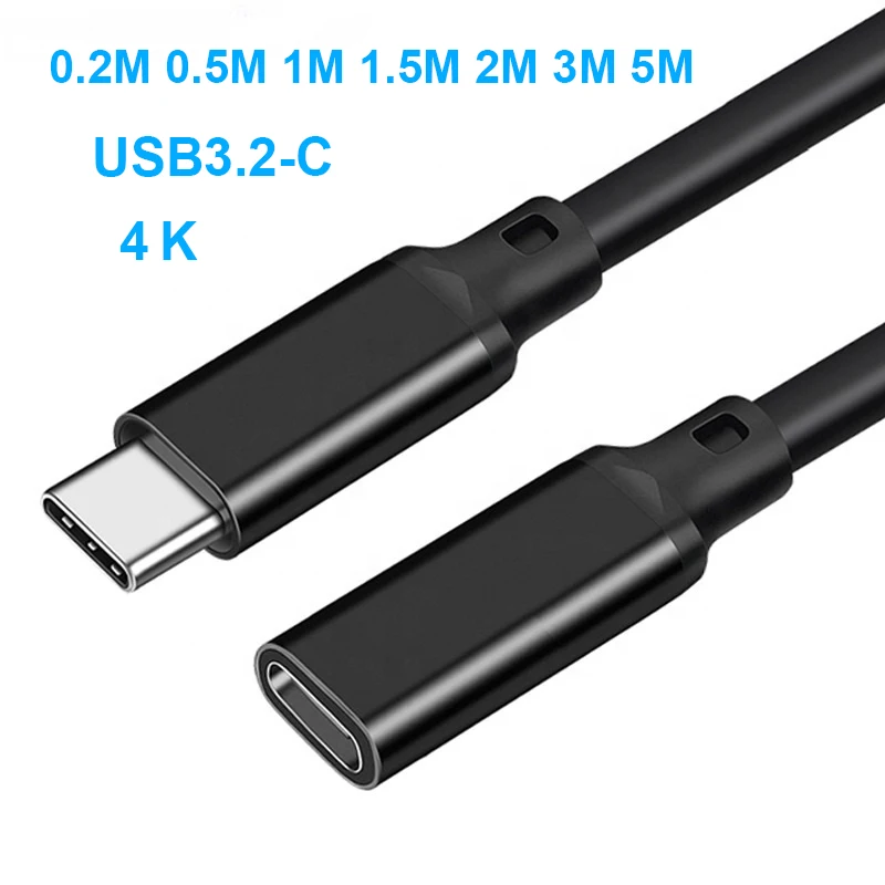 Comprar 4K@60HZ PD 100W 5A 10Gbps USB3.2 Gen2 USB Tipo C Cable de extensión de transferencia de datos macho a hembra