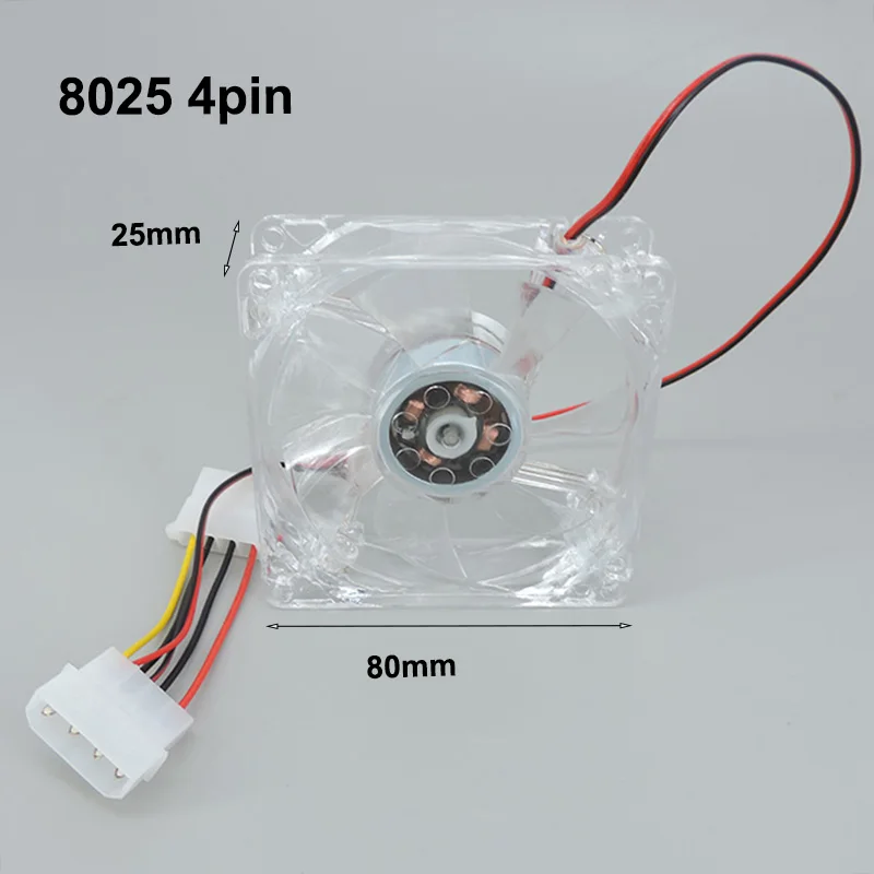Comprar 4pin 8cm 8025 verde rojo azul blanco cuatro colores LED PC caja de ordenador ventilador de refrigeración sin escobillas 80x80x25 DC 12V refrigerador