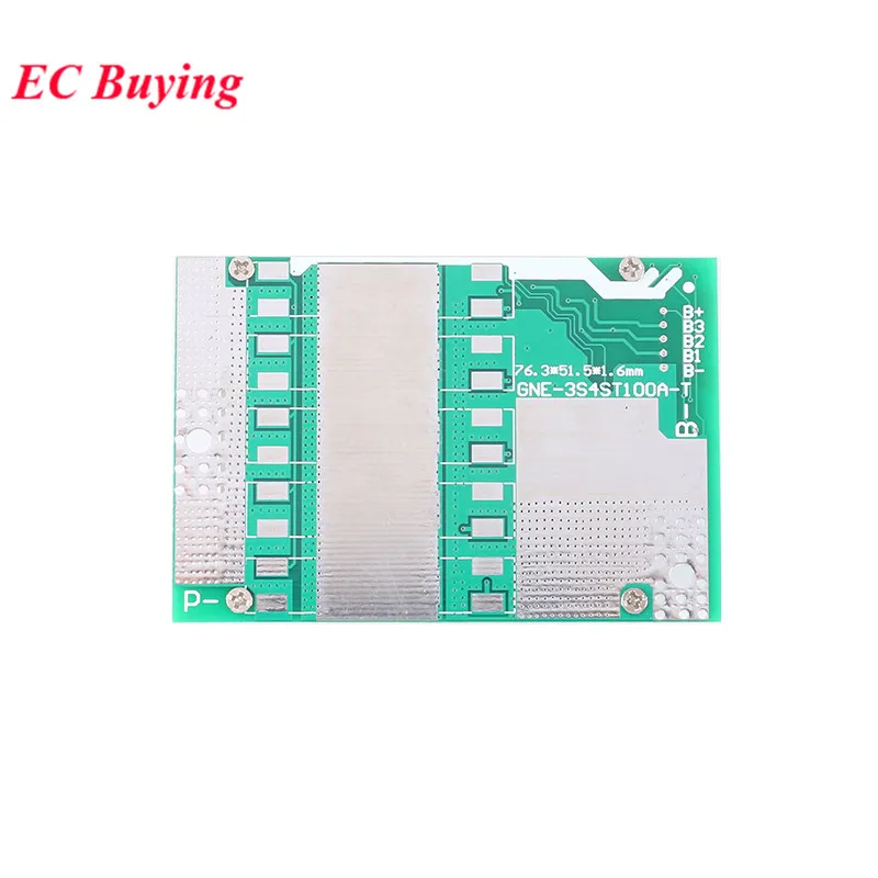 Size: 18*53 *3mmWorking current: 0.5A~8A maxOvercharge protection voltage: single cell 3.75V ± 0.025VOver-discharge protection voltage: single cell 2.10V ± 0.1VShort circuit protection: YesApplicable assembly: nominal 3.2V iron lithium battery / four stringsLoad power: DC 10-16V80W or less Non-power toolsPrecautions:Solder B- first and then B1+ to B2+ and then B3+ last B+Output P-P+ can be welded in successionWhen soldering the protection board, the contact time between the soldering iron and the protection board should not be too long. It is recommended to be within 1.5 seconds.Please follow the above welding method, otherwise the protection board will burn out.4S 12.8V 50A Same PortParameters (special for power tools)
