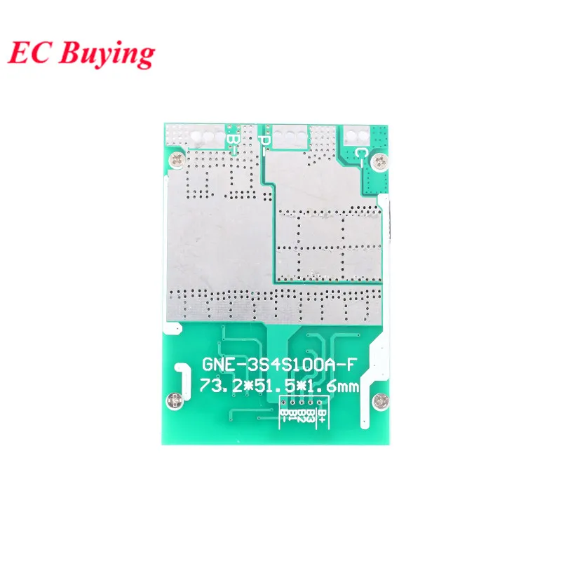 Size: 18*53 *3mmWorking current: 0.5A~8A maxOvercharge protection voltage: single cell 3.75V ± 0.025VOver-discharge protection voltage: single cell 2.10V ± 0.1VShort circuit protection: YesApplicable assembly: nominal 3.2V iron lithium battery / four stringsLoad power: DC 10-16V80W or less Non-power toolsPrecautions:Solder B- first and then B1+ to B2+ and then B3+ last B+Output P-P+ can be welded in successionWhen soldering the protection board, the contact time between the soldering iron and the protection board should not be too long. It is recommended to be within 1.5 seconds.Please follow the above welding method, otherwise the protection board will burn out.4S 12.8V 50A Same PortParameters (special for power tools)