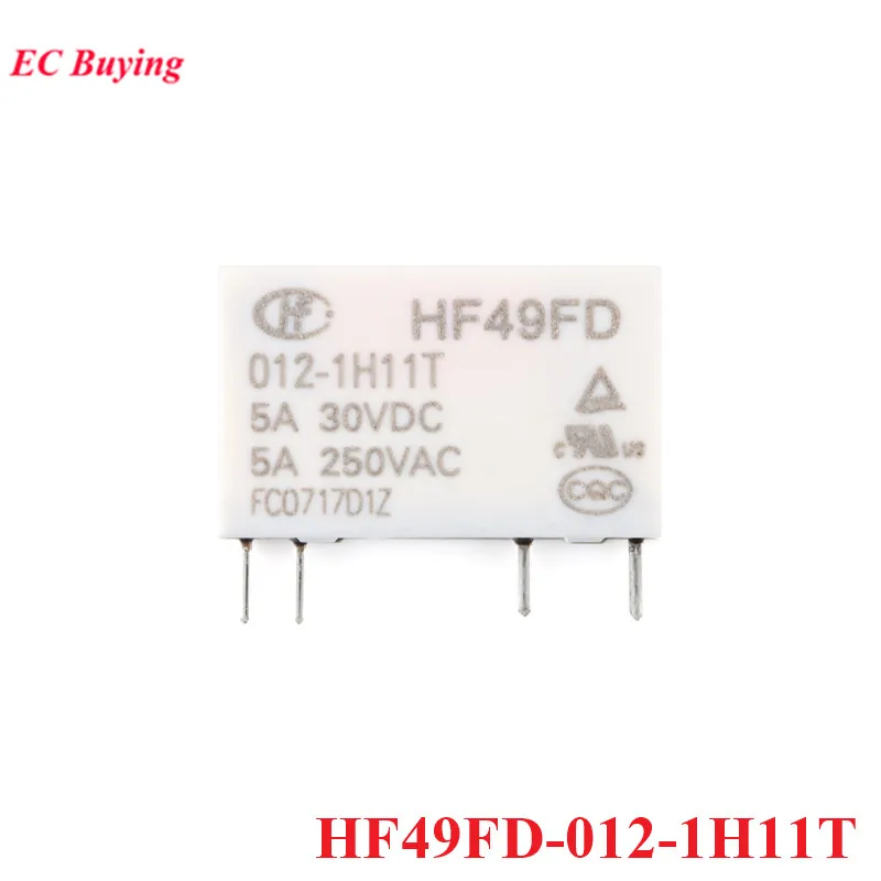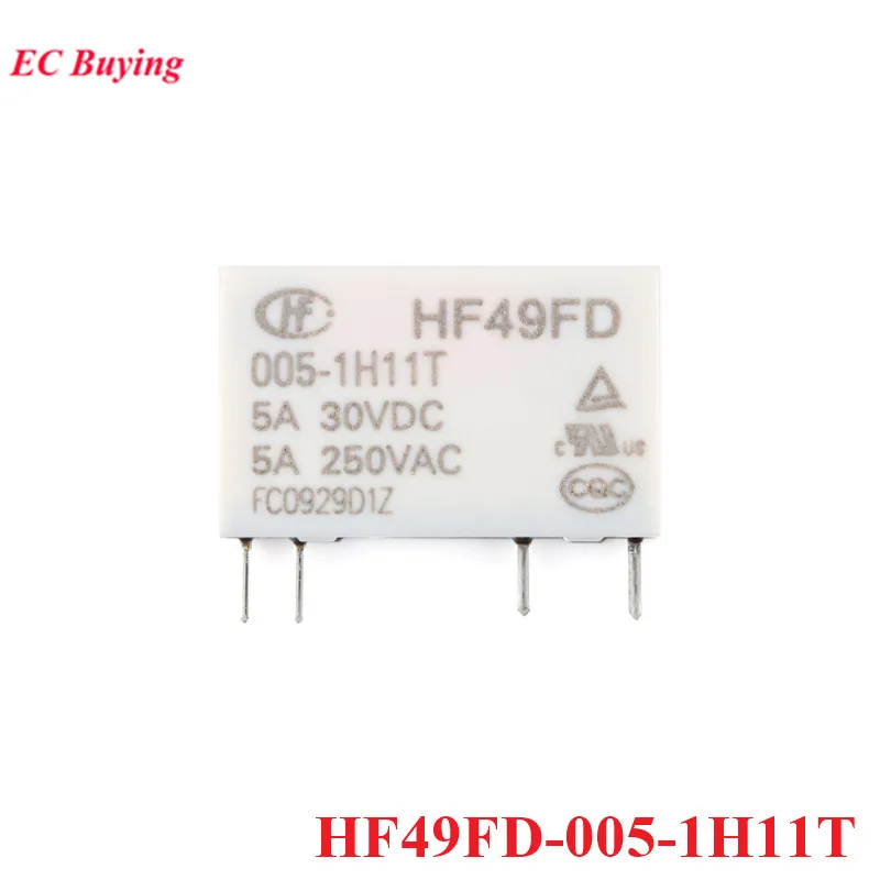 5/1 Uds relés de potencia HF49FD HF49FD-005-1H11T HF49FD-012-1H11T HF49FD-024-1H11T DC 5V 12V 24V 5A 4 pines Relais pies distancia 5,08mm