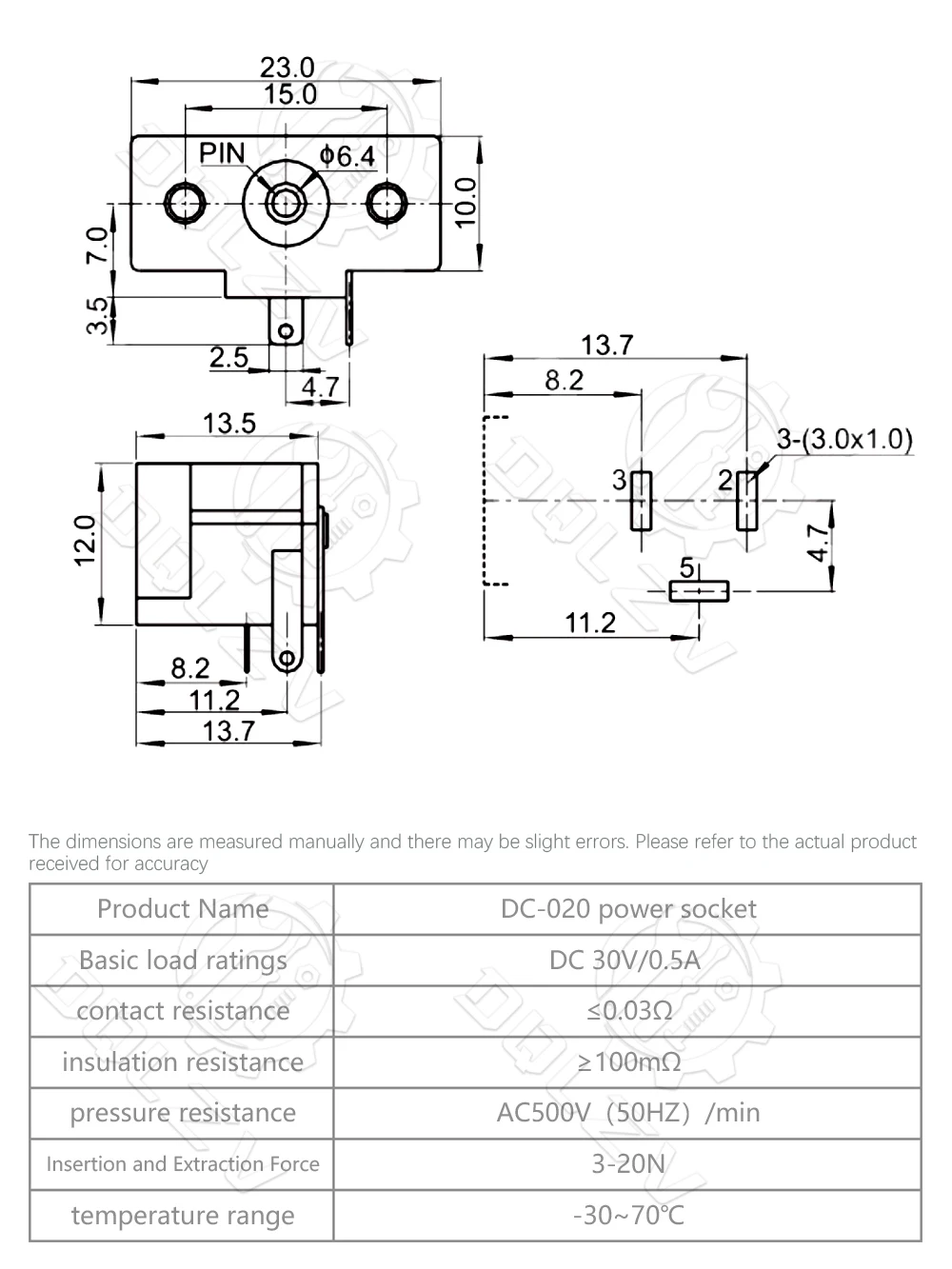 Comprar 5,5*2,1mm 5,5*2,5mm DC-020 enchufe hembra de alimentación CC Panel de interfaz de alimentación CC con orificios de montaje 23*10MM DC-059 90 grados 3P