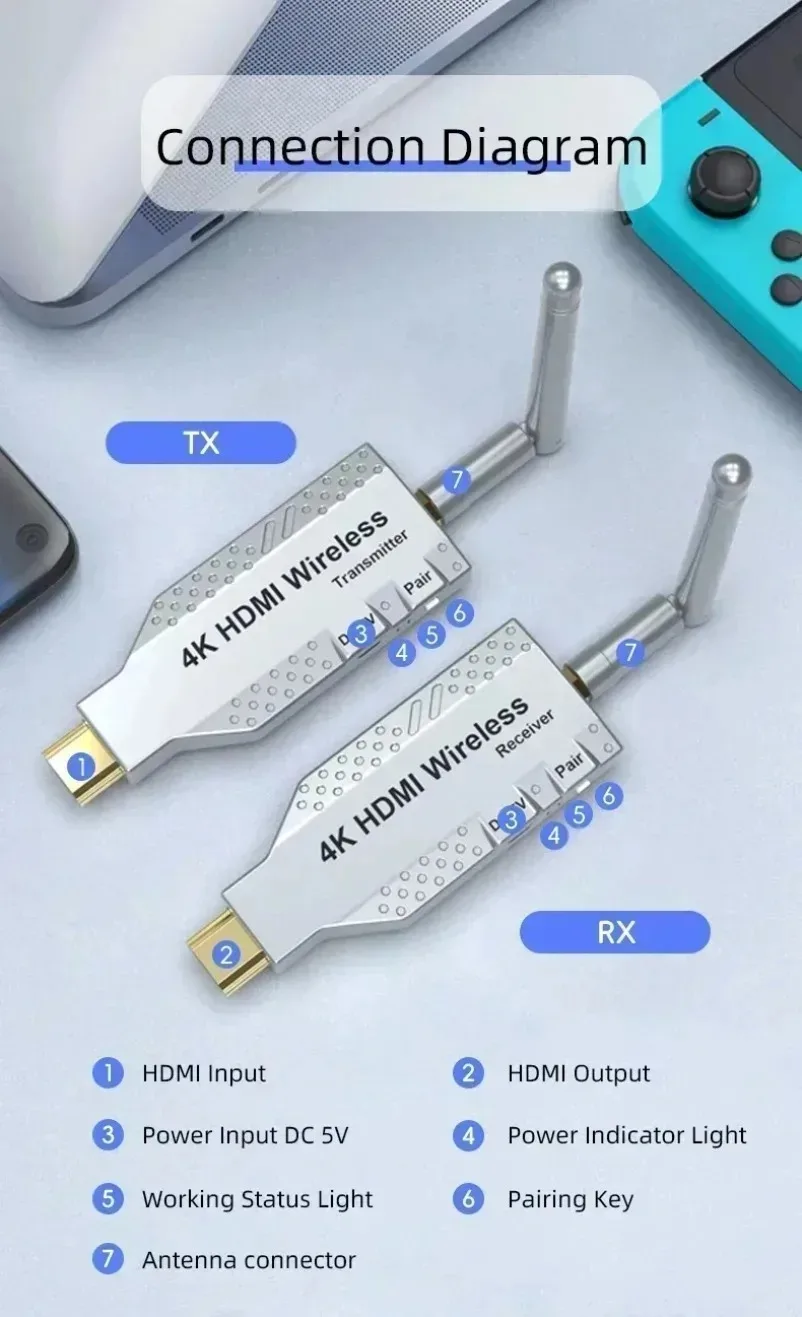 1.Transmisión de audio y vídeo HDMI a través del protocolo de transmisión inalámbrica incorporado, sin necesidad de wifi ni Internet