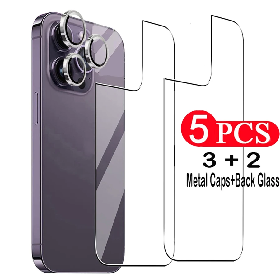 Comprar 5 en 1 [2 vidrio trasero + 3 kit de protección de lentes] vidrio templado transparente para iPhone 16 15 14 Plus 13 12 11 Pro Max Mini película de pantalla trasera