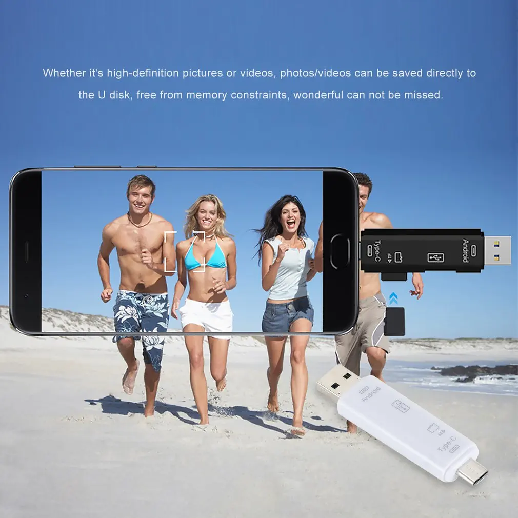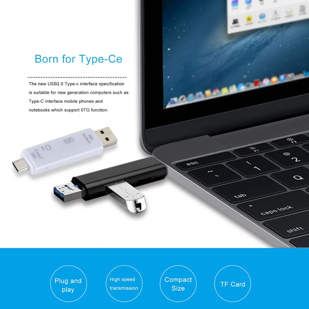 Especificaciones: Material: ABS Color: negro, blanco Función del producto: USB macho + MICRO macho + tipo C macho, Lee rápidamente tarjetas de memoria TF,.