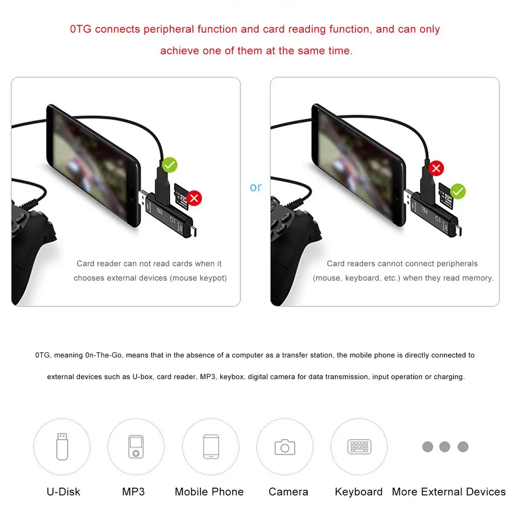 Características: 1 función del producto: USB macho + MICRO macho + tipo C macho, Lee rápidamente tarjetas de memoria TF, teclado externo con interfaces USB macho, ratones, discos flash USB, escudos USB,. gamepads y otros dispositivos USB. 2. Equipo de soporte: teléfonos móviles, Mac_book (USB tipo-c), ordenadores portátiles, ordenadores comunes 3. Compatible con múltiples sistemas: Compatible con Micro / Usb/Tipo c / TF 4.Plug and play, soporte de intercambio en caliente. 5. Adecuado para teléfonos Android con función OTG