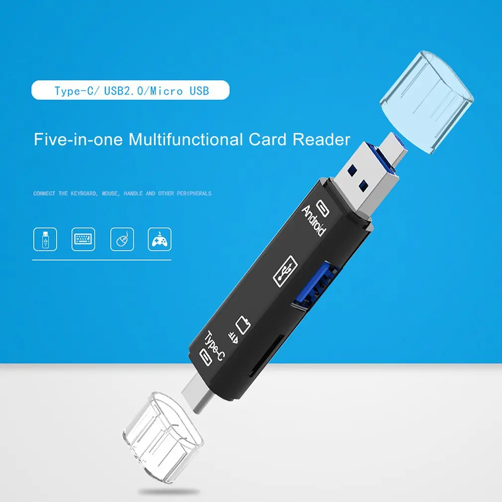 Comprar 5 En 1 USB 2,0 tipo C / USB / Micro USB SD TF lector de tarjetas de memoria OTG adaptador conector lector de tarjetas de memoria de alta velocidad PCI-E Riser