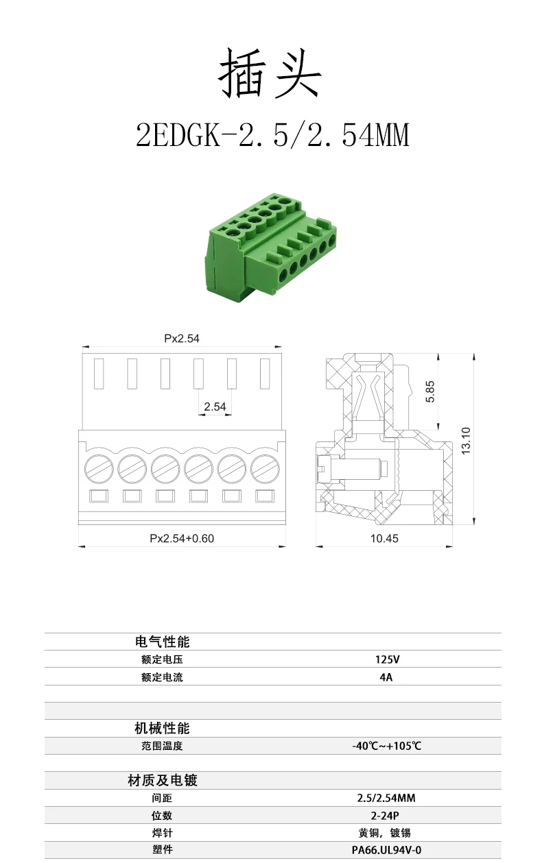 5sets 15EDG 2.54mm Pitch Screw Wiring Plug-in Terminal Plug Welding Plate Socket 2.54 Plug + Pin Header Socket 2p 3p 4p 5p 6p