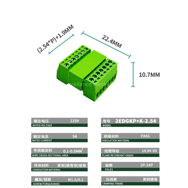 Comprar 5 Juegos 2edgrk-2.54mm Micro bloque de terminales Plug-in 15EDGKP 2P/3P/4P/5P/6P/8P macho y hembra conjunto de terminales de tornillo verde
