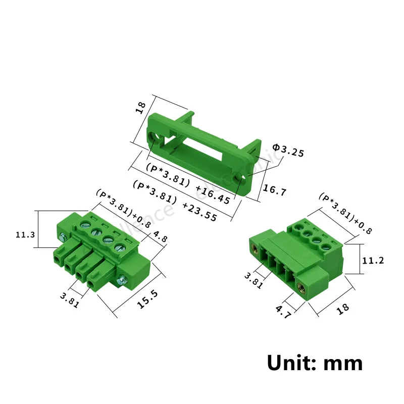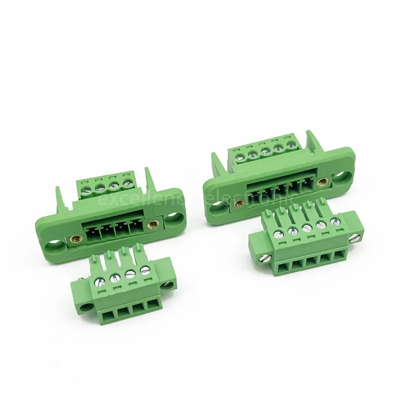 Comprar 5 Juegos de bloque de terminales de 3,81mm a través de la pared sin soldadura tipo enchufable 2P/3P/4P/5P/6P/8P/10P/12P/16P 3,81mm con Panel fijo de brida