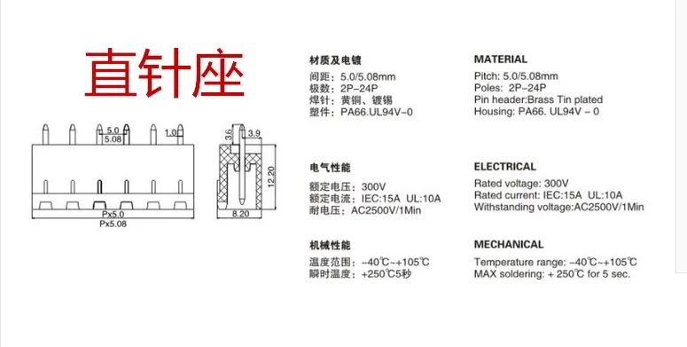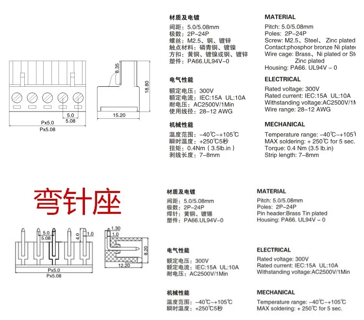 Comprar 5 Juegos de conectores de bloque de terminales de tornillo 2EDG 2/3/4/5/6/7/8/9 Pines, enchufe de paso de 5,08 MM + enchufe de cabezal de pin recto para pcb 2p 3p 4p