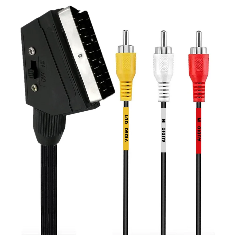 CARRITO A 3 CABLE DE AUDIO/VIDEO PHONO RCA CON INTERRUPTOR 1,5 M;Línea SCART estándar europeo 21P Cabeza de escoba Línea de conexión de audio-vídeo Línea de diferencia cromática (línea 3AV 3RCA) 1,5 mMáquina satelital y función de enchufe europeo de 21 agujas (cabeza de escoba) de las líneas de conexión de la máquina y la televisión;Función de la línea SCART: En China, la interfaz SCART se utiliza principalmente para pruebas, como pruebas de de decodificadores, pruebas de DVD, etc.Se utilizan las funciones gráficas y de texto de la interfaz SCART, generalmente para realizar pruebas.Se utiliza para: máquina satélite y función de enchufe europeo de 21 pines (cabezal de escoba) de las líneas de conexión de la máquina y la televisión.Peso: 0,110 KG