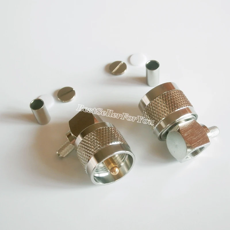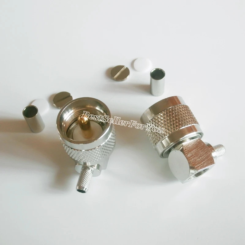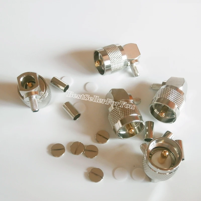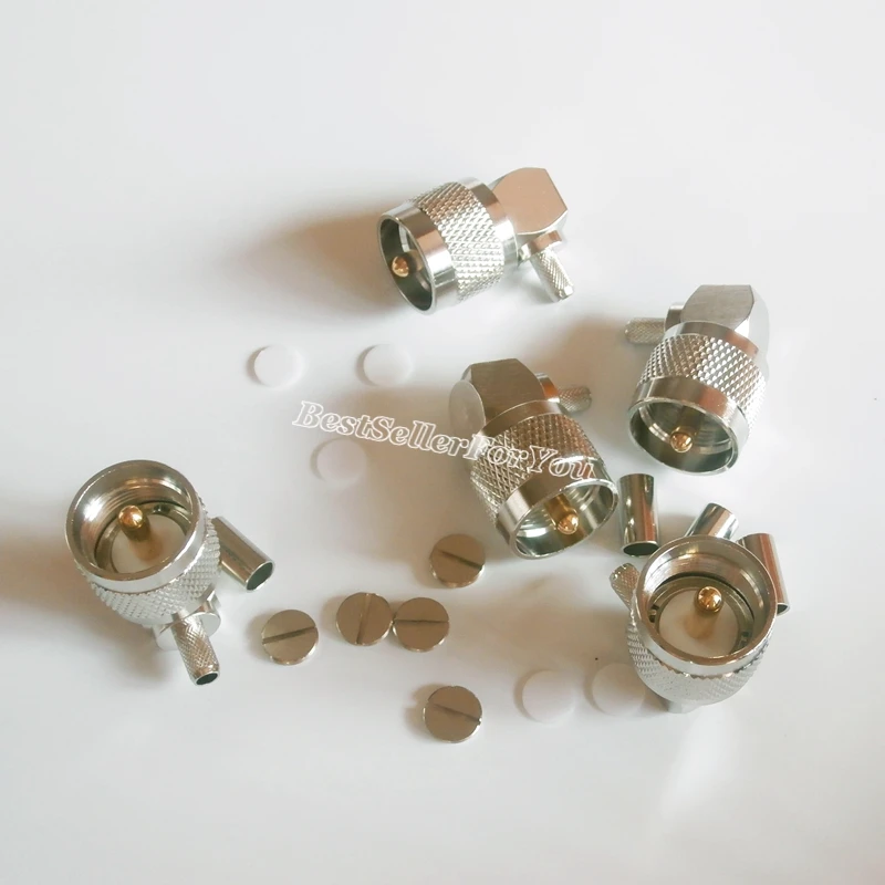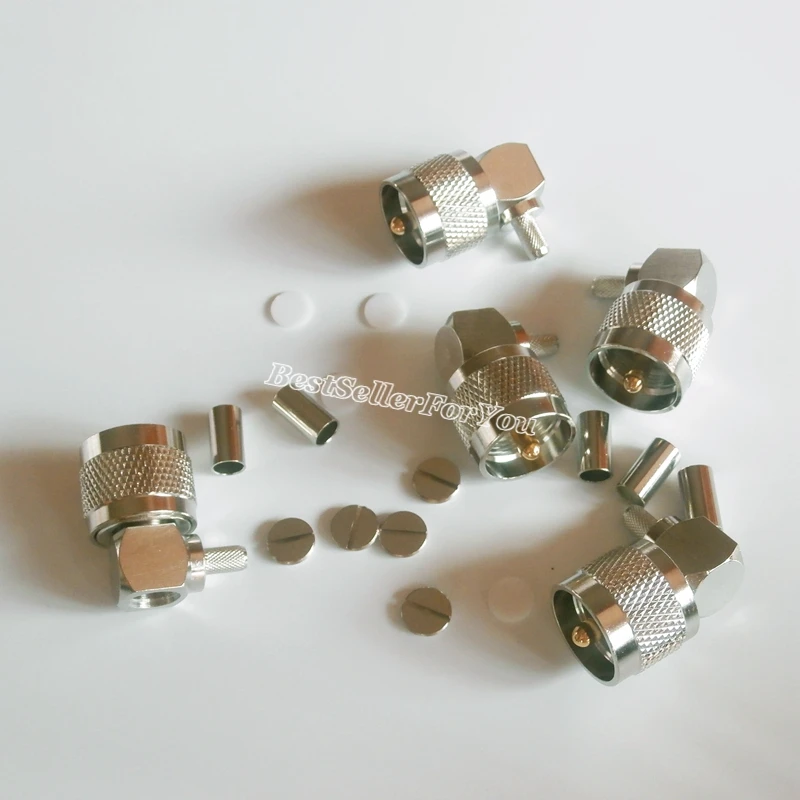 Comprar 5 piezas UHF macho PL259 crimp 90 grados ángulo recto RG58 LMR195 RG142 RG400 Cable conector RF
