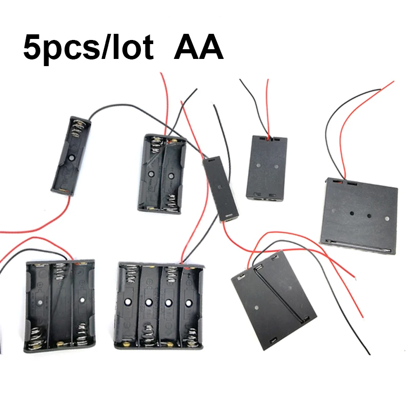Comprar 5 uds 1 2 3 4 puertos de ranuras tamaño AA caja de almacenamiento de batería soporte de caja cables con h