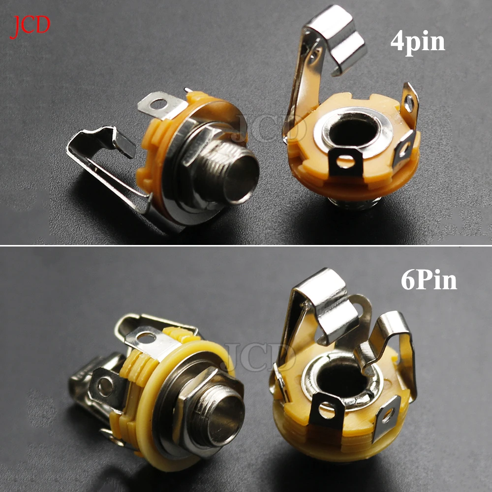 5pcs 1/4" 6.35mm Mono stereo 4 6 pin Pole Female Panel Mount power socket Connector 6.5 Audio cable Jack plug Solder Adapter