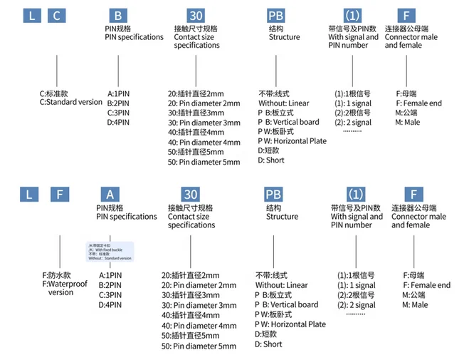 Nombre del artículo: Conector de batería de litio / Enchufe macho y hembra