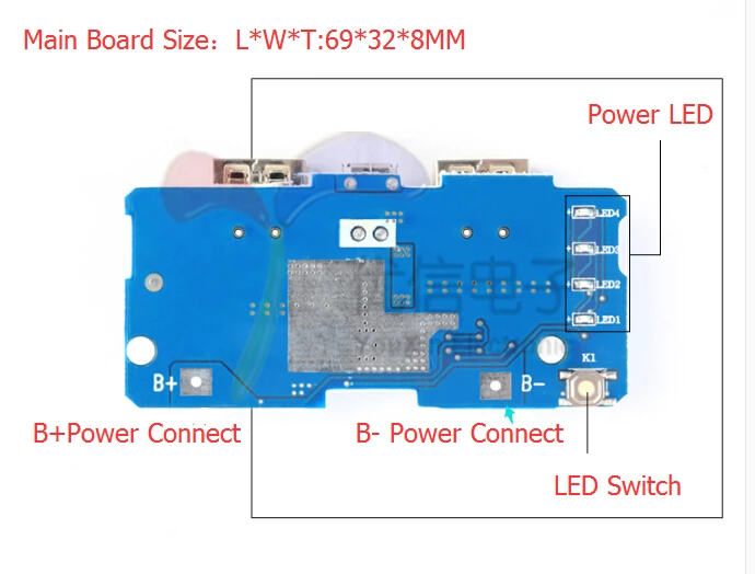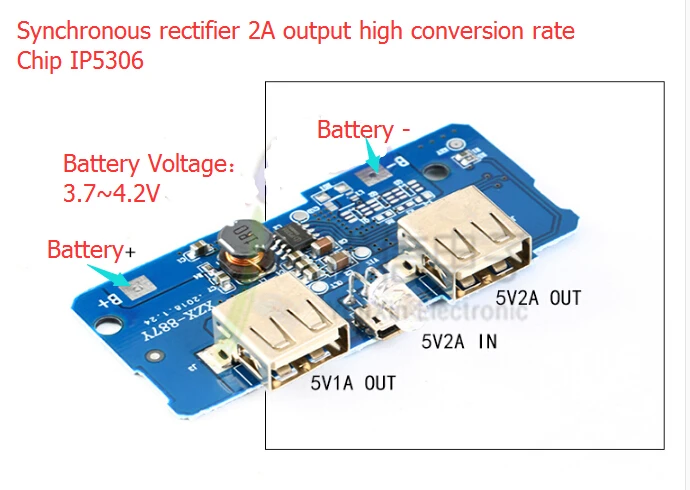 Protección de carga y descarga: la placa de circuito tiene un IC de protección de batería de litio incorporado, protección contra sobretensión, protección contra sobrecorriente y protección contra subtensión.