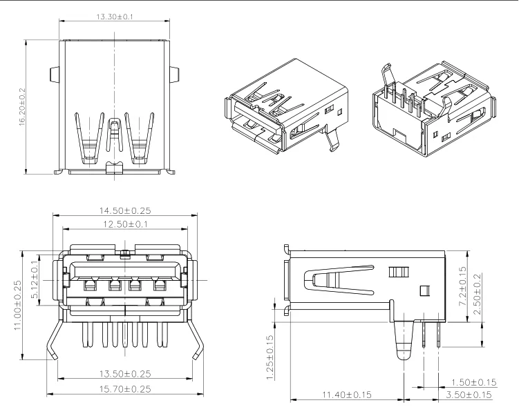 5 uds/10 Uds conector Jack USB 3,0 hembra conector USB 3,0 DIP de 90 grados para disco U transmisión de datos de velocidad H boca curva