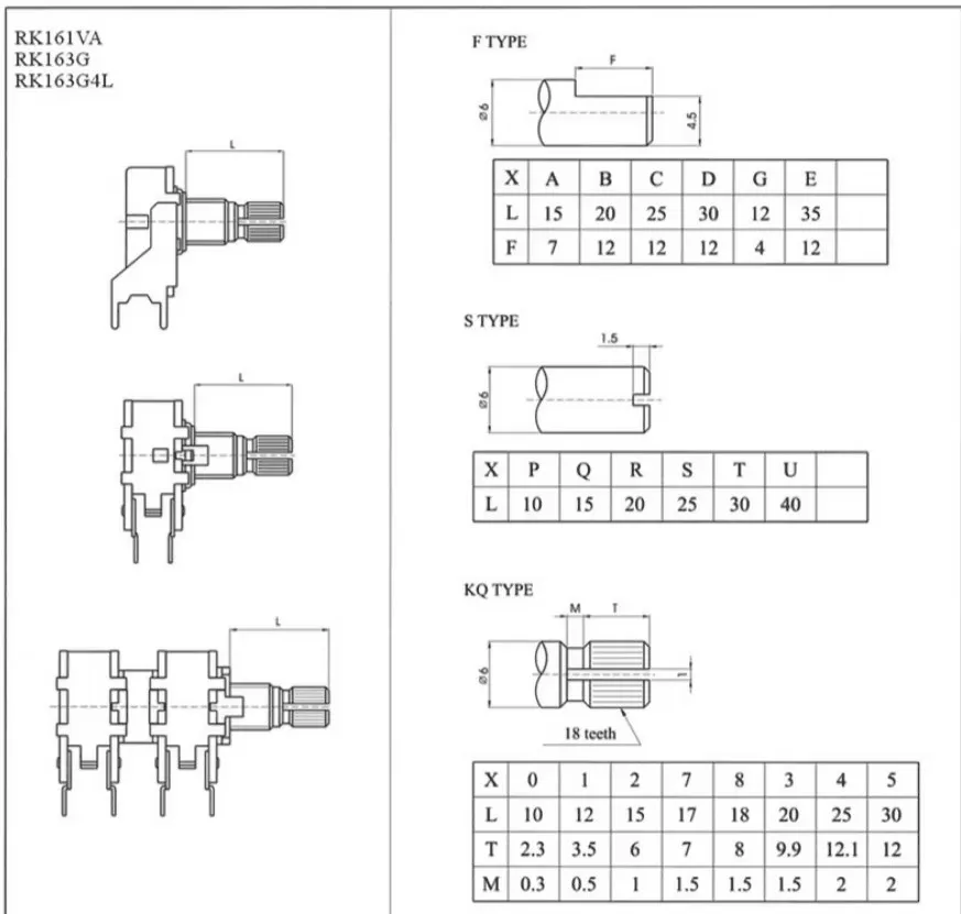 Resistencia: 1K/2K / 5K / 10K / 20K / 50K / 100K / 250K / 500K / 1M