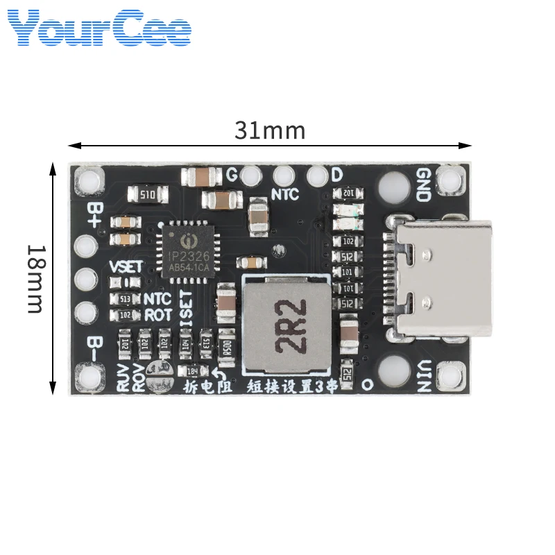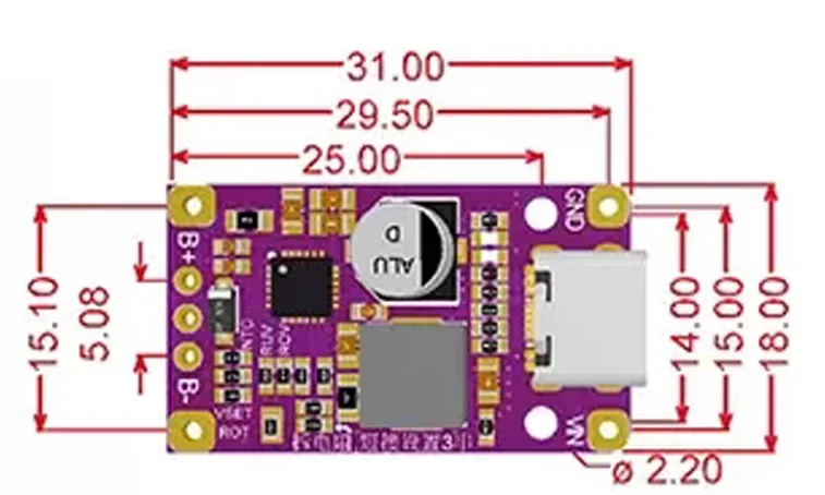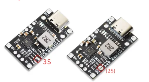 The module is suitable for 3.7V lithium batteries with two or three strings. By short circuiting, it defaults to two strings. When two strings are used, the module's built-in battery balancing function can be used, which is very practical. The input can be done through TYPE-C port and solder wire. When the TYPE-C port is connected to a fast charging power supply, the charging voltage is automatically adjusted to improve efficiency. If the input voltage is lower than the battery voltage when the solder wire is input, the module can only work in boost mode.