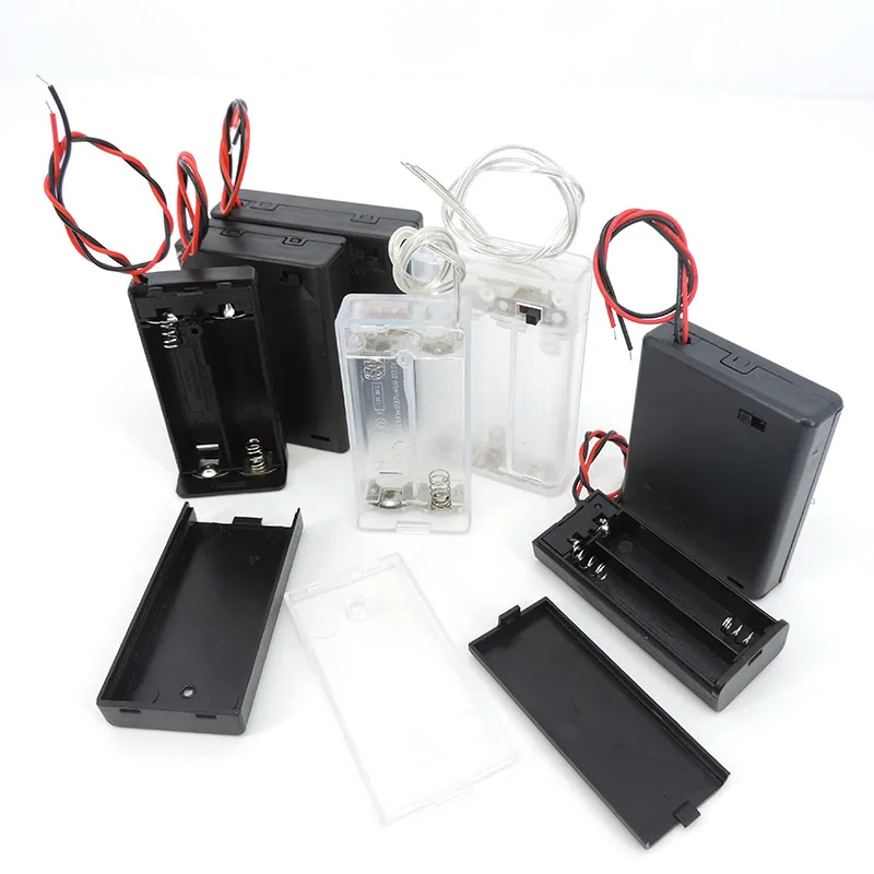 Soporte de batería AA AAA de 2/3/4 ranuras, caja de batería de 1,5 AA V/3V/4,5 V/6V con cables de plomo, interruptor de encendido/apagado y tapa de rosca, cubierta trasera