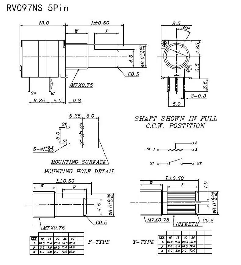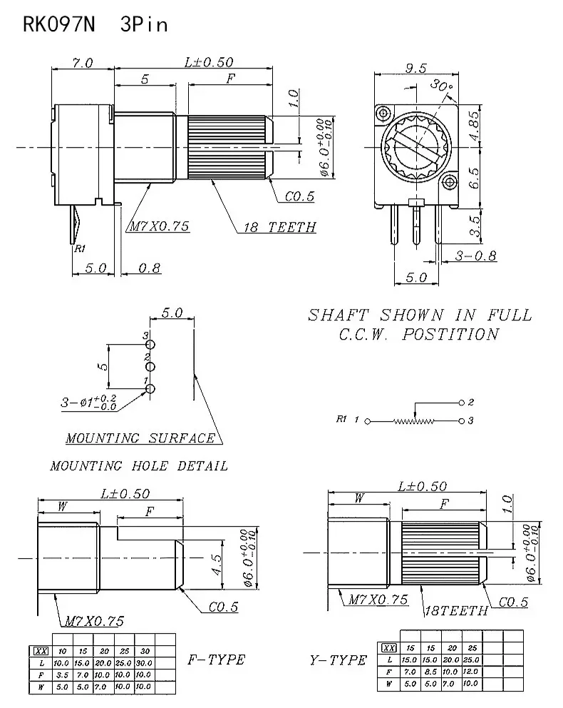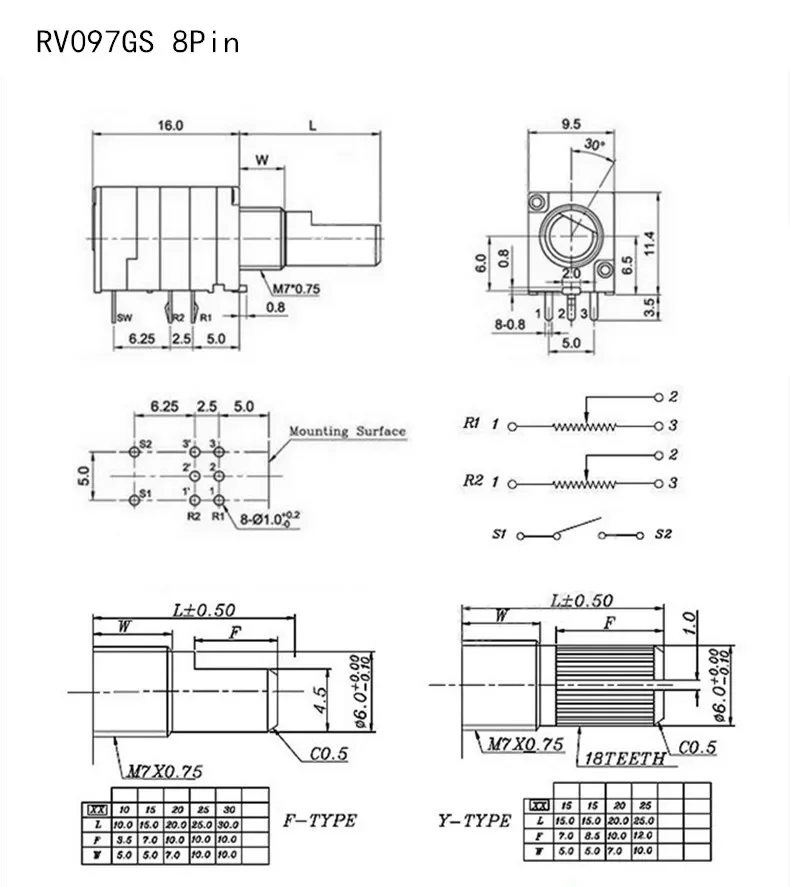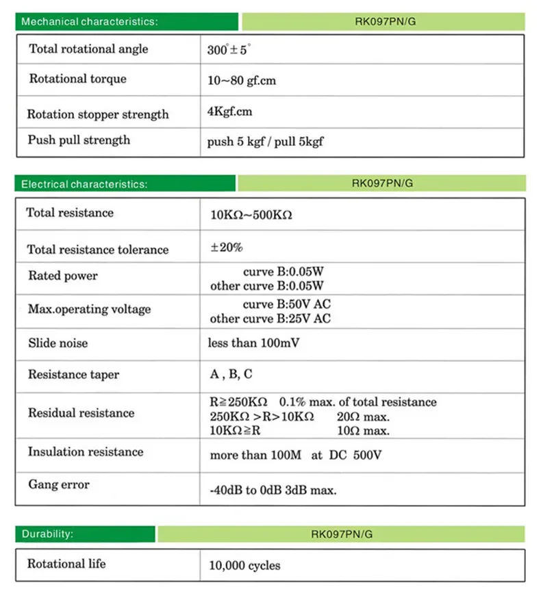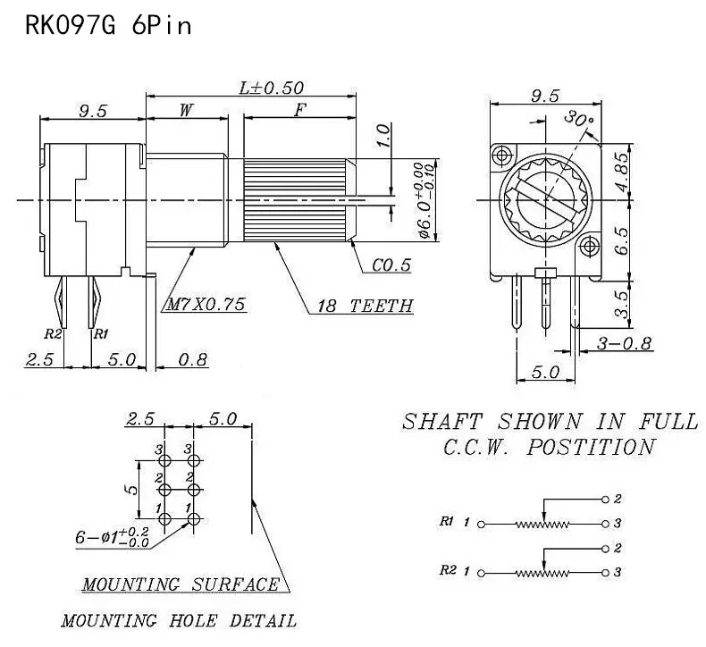 5 uds 3/5/6/8pin B1K B5K B10K B20K B50K B100K B250K B500K RK097N/G RV097 amplificador de Audio resistencia de potenciómetro ajustable de volumen