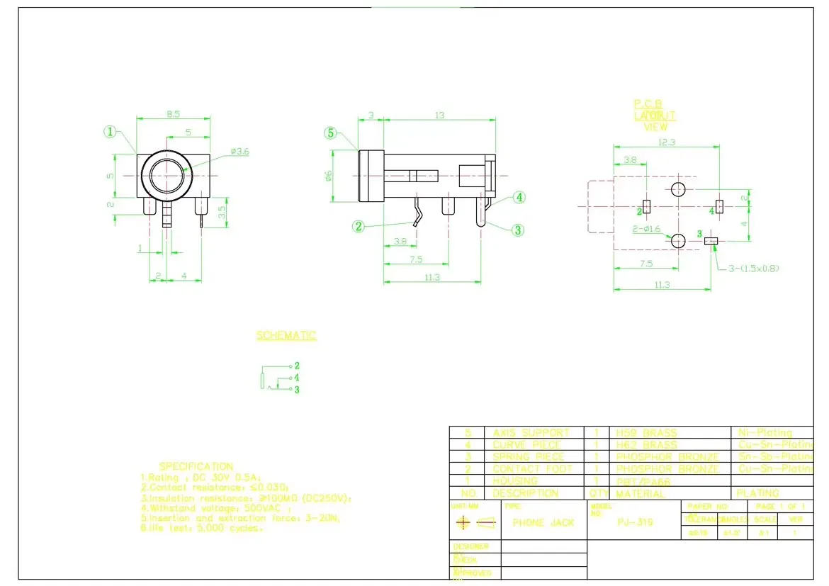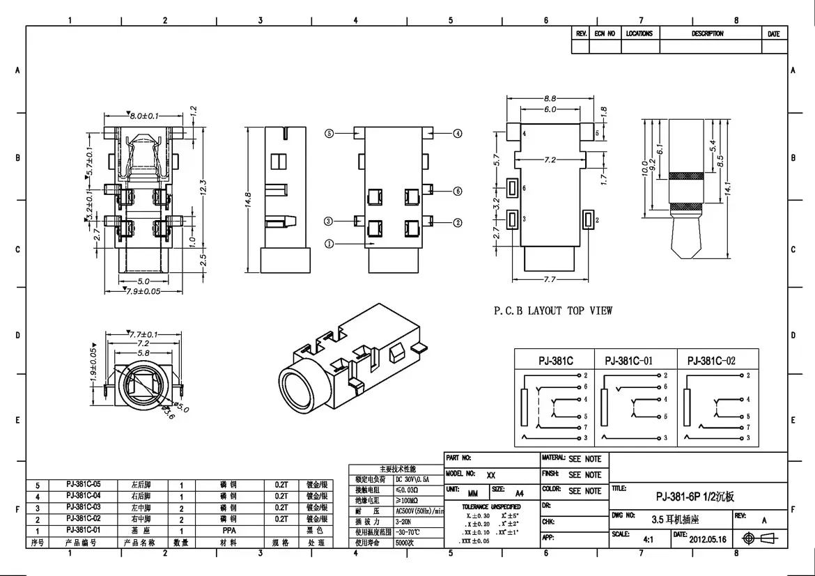5 uds 3,5mm base de audio PJ-328B PJ-383 enchufable doble columna doble canal cuatro segmentos toma de auriculares altavoz PJ-342