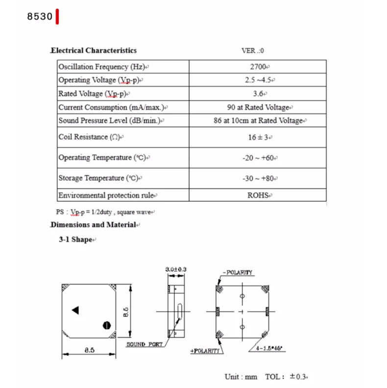 5 uds 3V 5V 8,5 × 8,5 × 3MM zumbador pasivo zumbador magnético antipérdida 8,5*8,5*3MM altavoz para Arduino Electro Kit SMD 8530