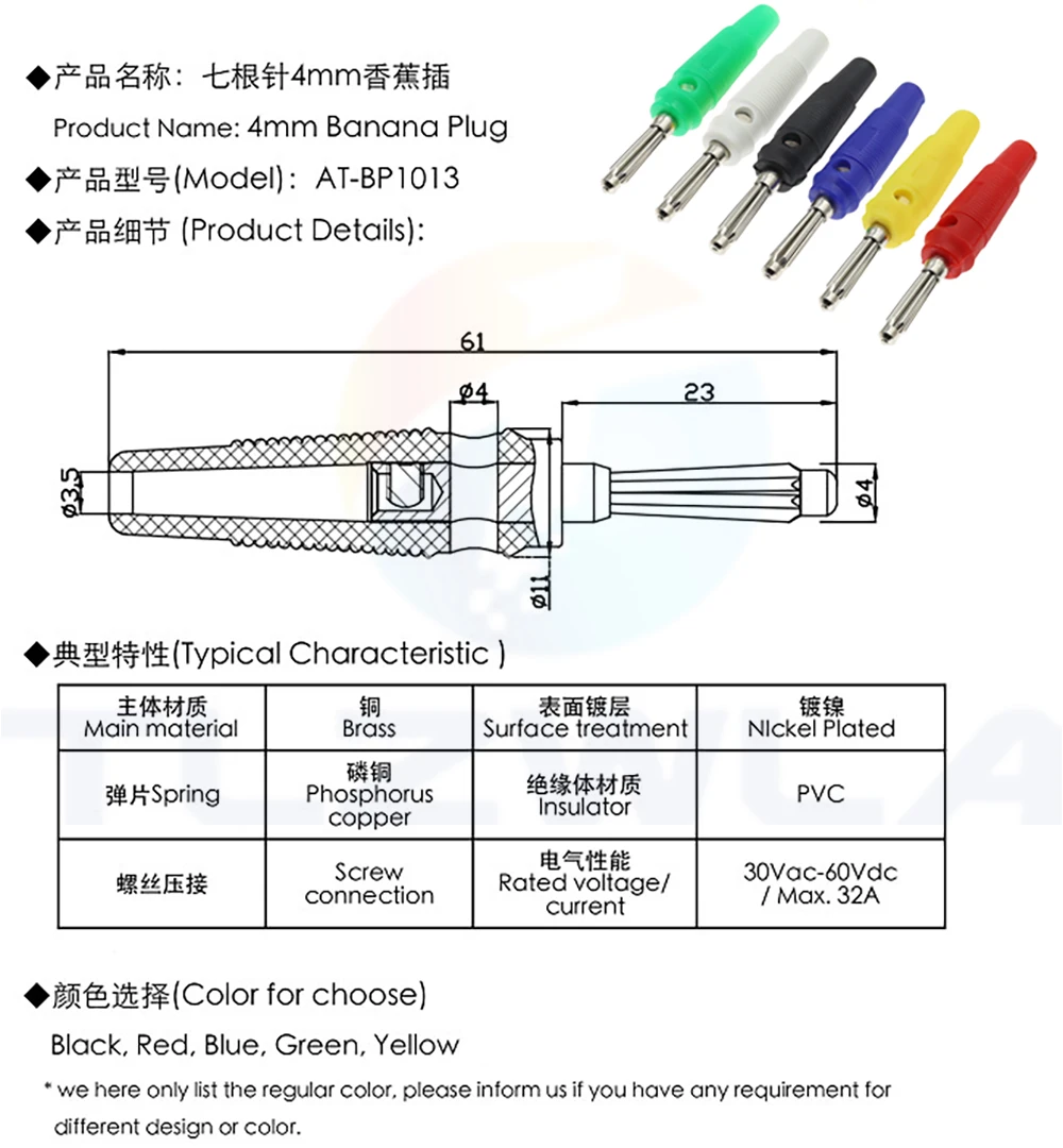 5 uds 4mm 32A alta corriente sin soldadura tornillo lateral apilable conector Banana cobre