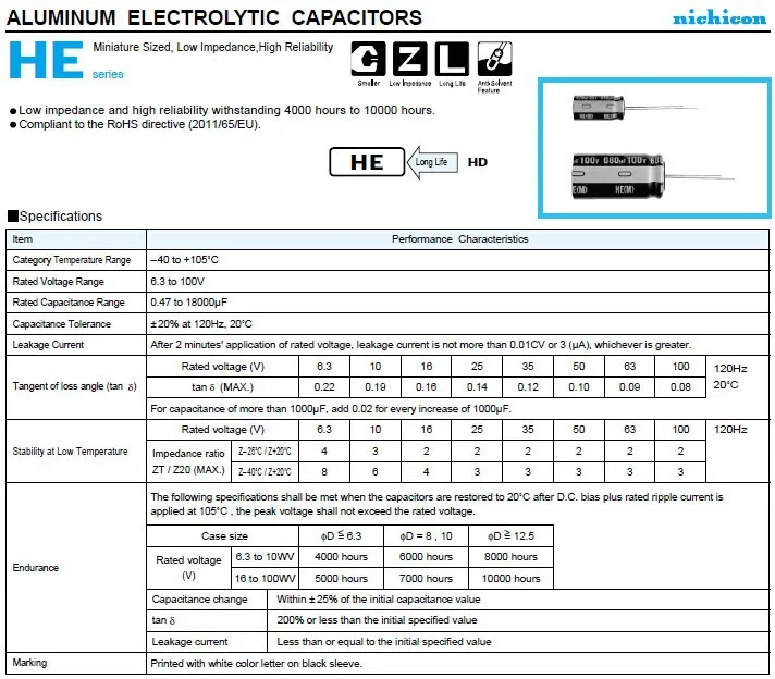 NOTA:Impedancia extremadamente baja, alta confiabilidad, larga vida para fuentes de alimentación conmutadas