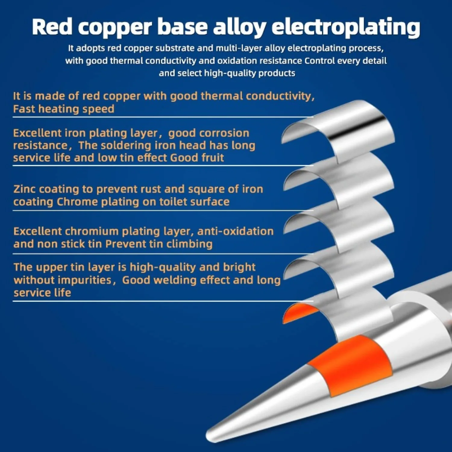 Siempre que utilice una nueva punta de soldador, siga los pasos a continuación, lo que prolongará considerablemente la vida útil de la punta del soldador.El núcleo de cobre del cabezal del soldador es hierro de material mixto + cobre rojo + zinc cromado.Si desea soldar materiales magnéticos como parlantes, debe usar un cabezal de soldador no magnético de cobre puro, pero el cabezal de soldador de cobre puro no es duradero, ¡cómprelo según sus propias necesidades!