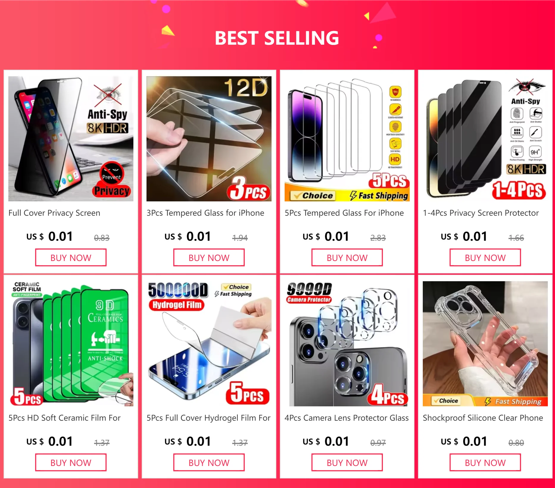 Color:For iPhone 16Pro Max Bundle:5Pcs 9D Glass