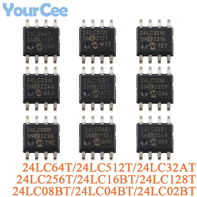 Comprar 5 uds AT24C512C AT24C 24LC16BT 24LC128T 24LC256T 24LC64T 24LC512T 24LC32AT 24LC08BT 24LC04BT 24LC02BT I2C Chip EEPROM de doble cable