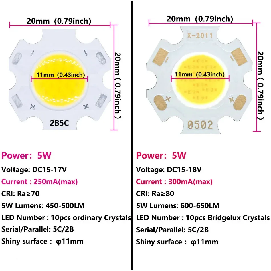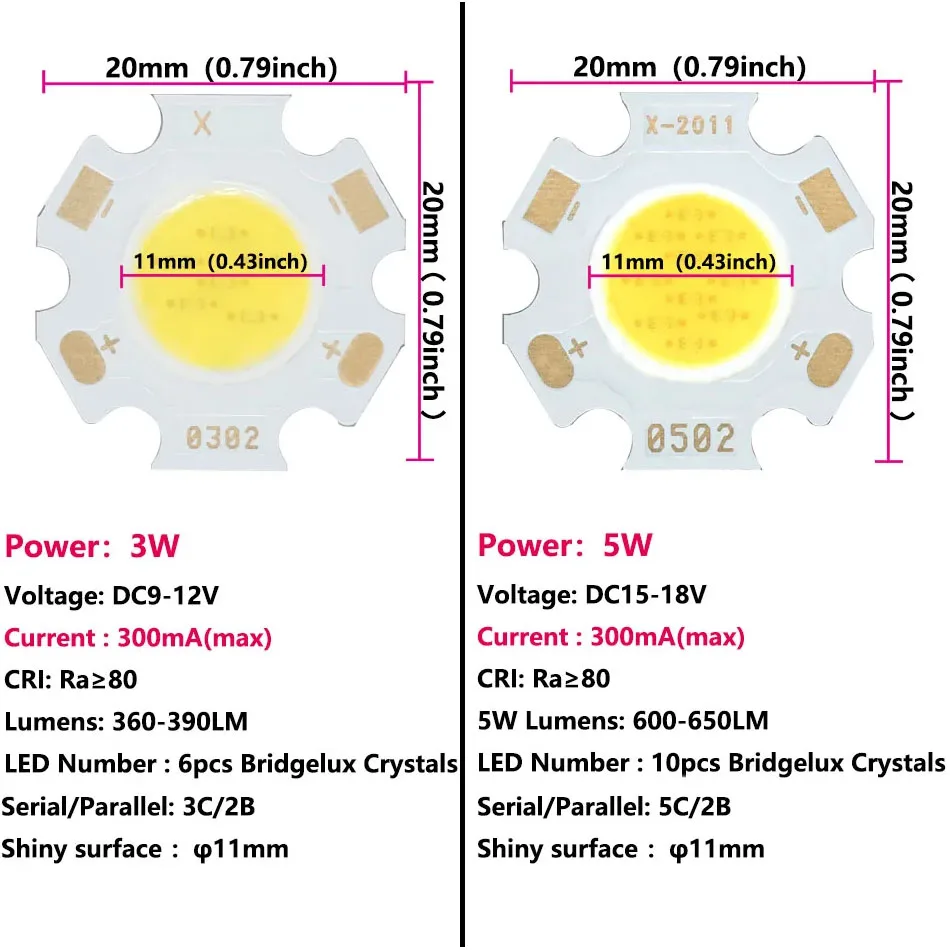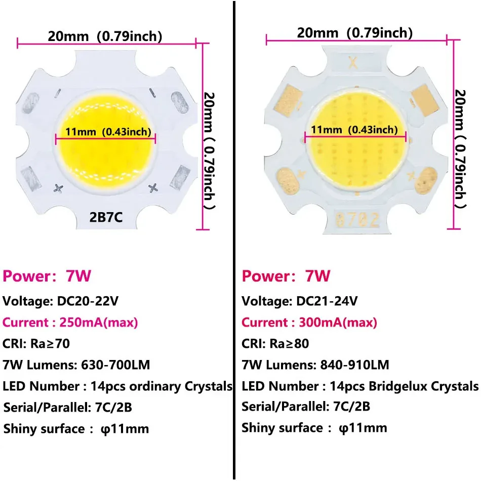 5 uds COB LED 3W 5W 7W 10W Neutral blanco frío cálido 20mm Chips lámpara 300mA para foco Downlight accesorios de fuente de luz DIY