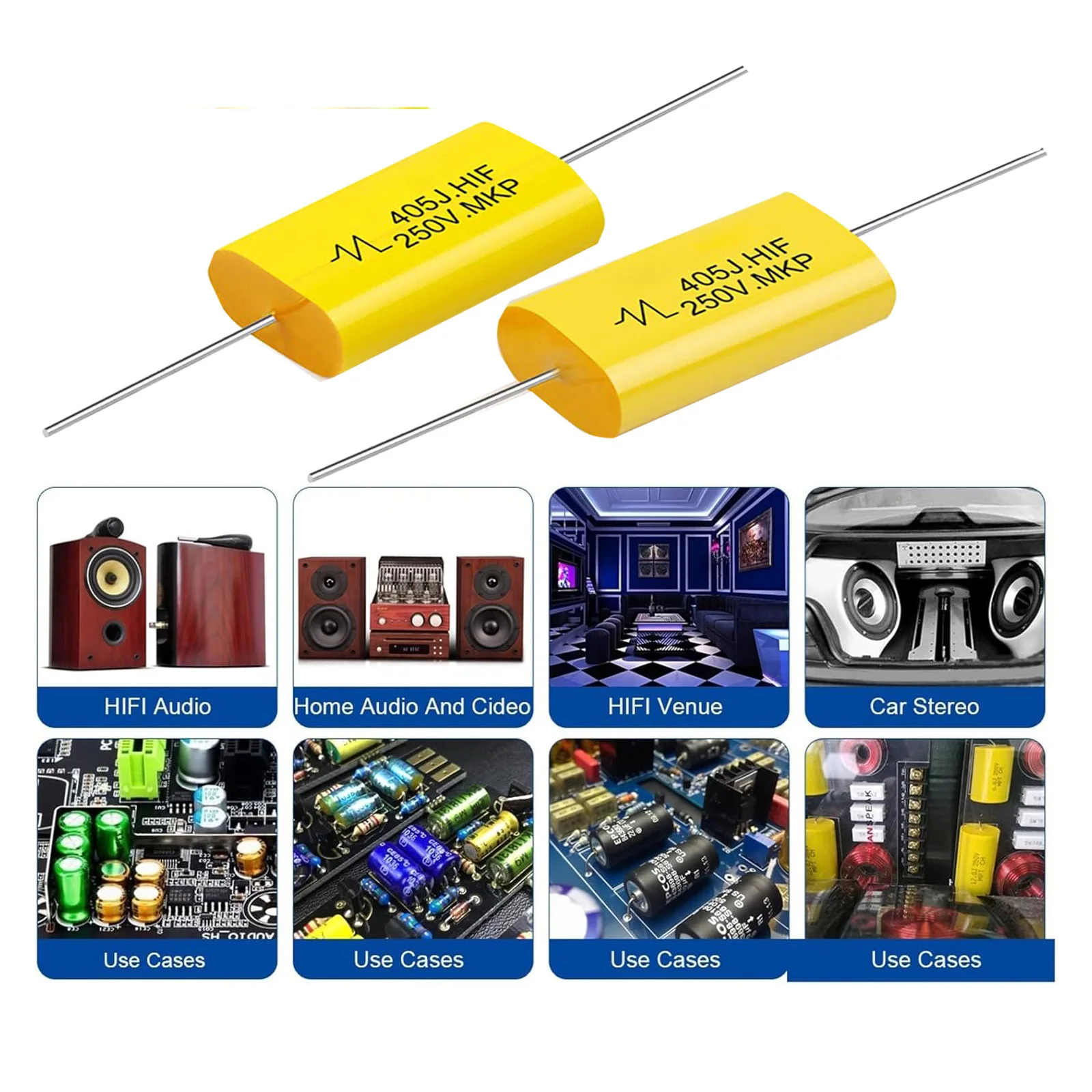 muy buenos capacitores, se ven de buena calidad, ya instalados en tweeters piezolectricos se oyen muy bien