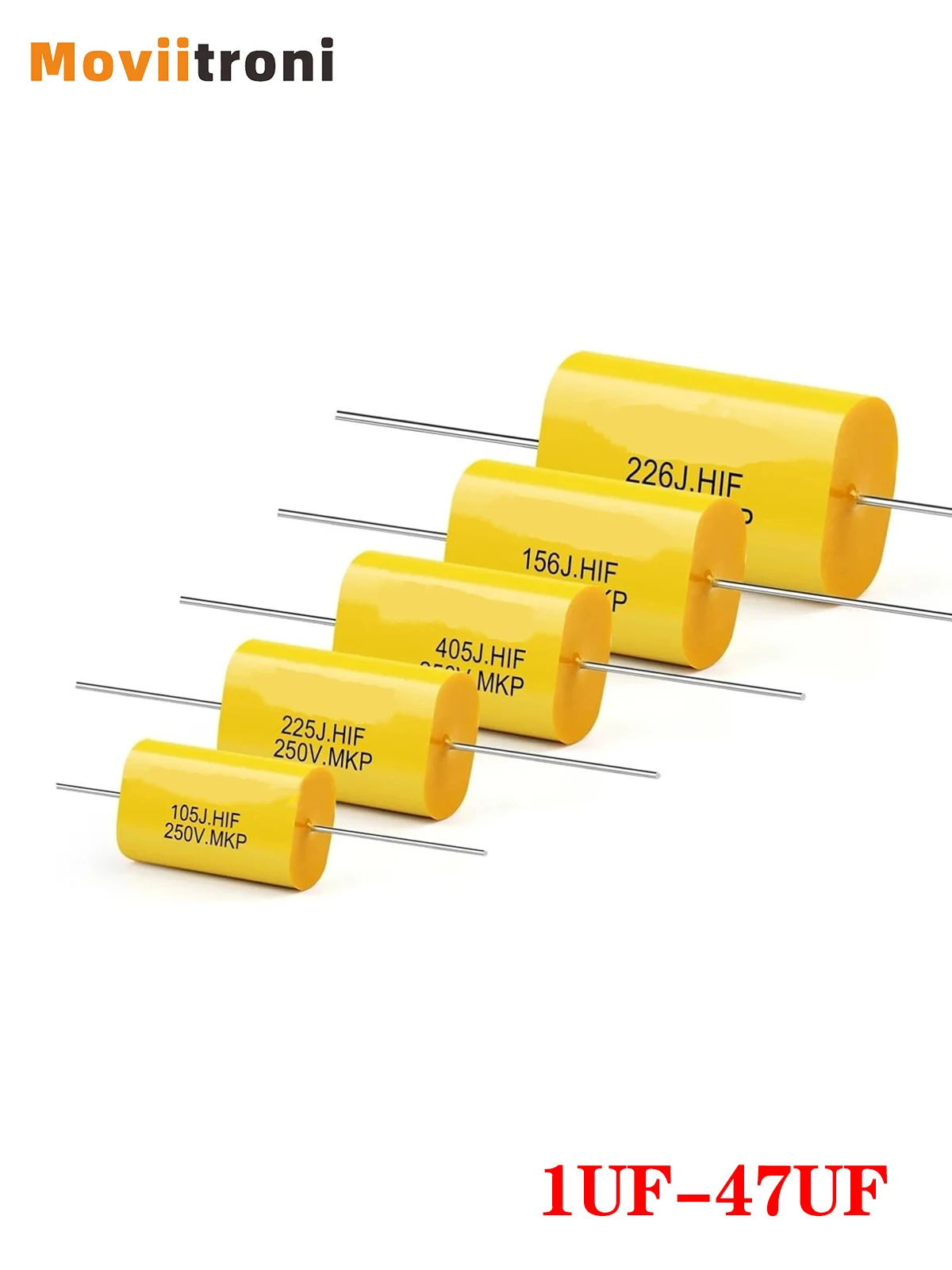 5PCS FilmCapacitor Audio 250V DC Tipo de plomo axial redondo Condensadores de polipropileno AmarilloDividación de frecuencia 1UF 1,5UF 1,8UF 2.2UF 2.7UF 3.3UF