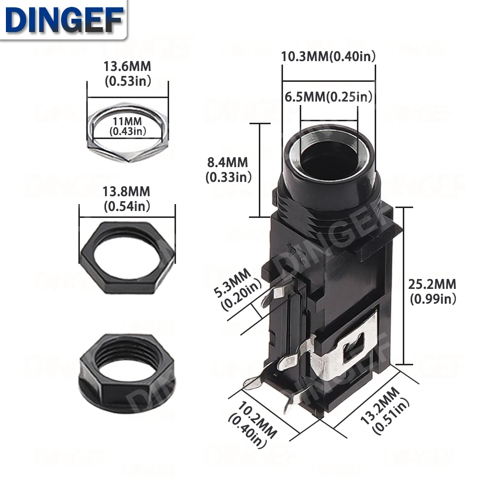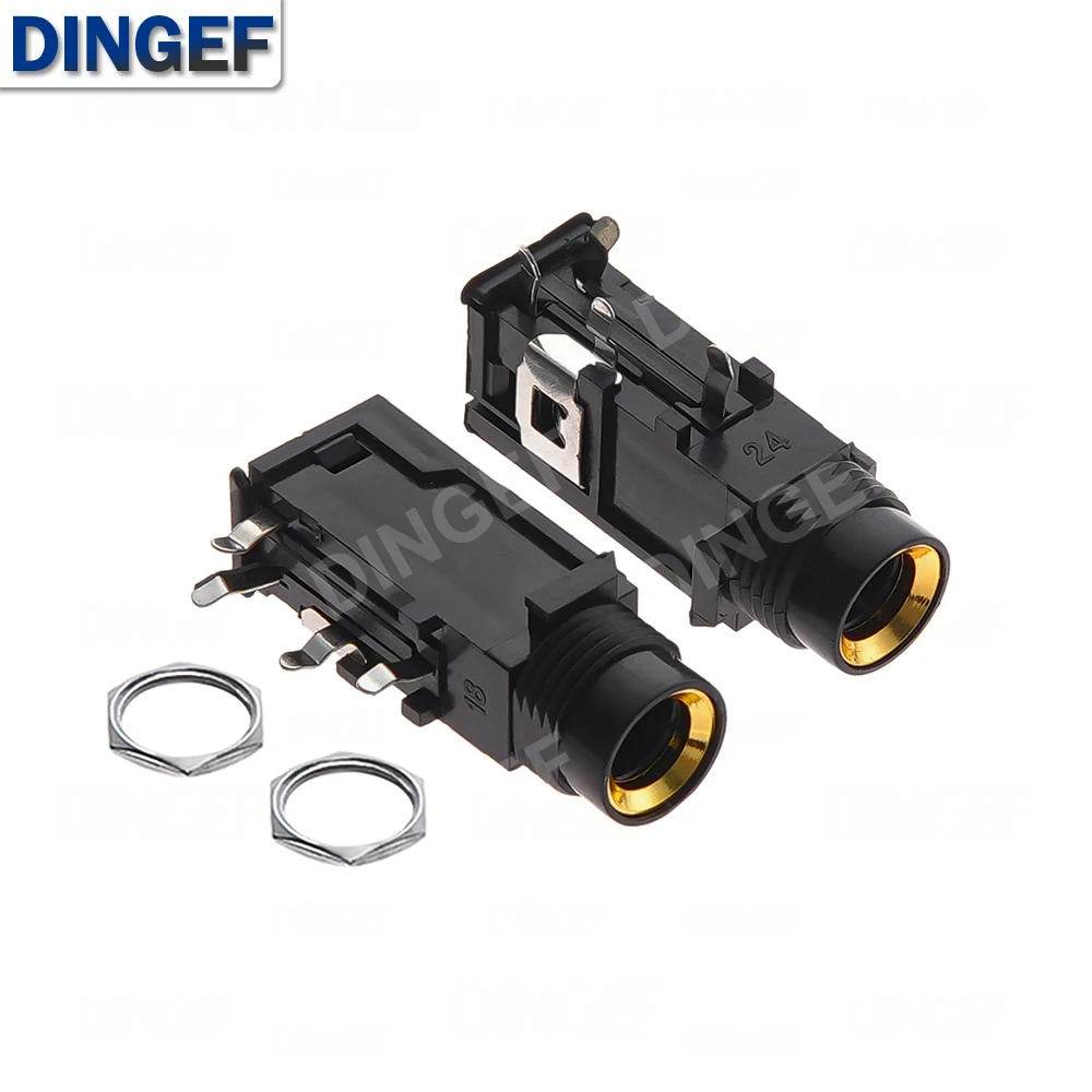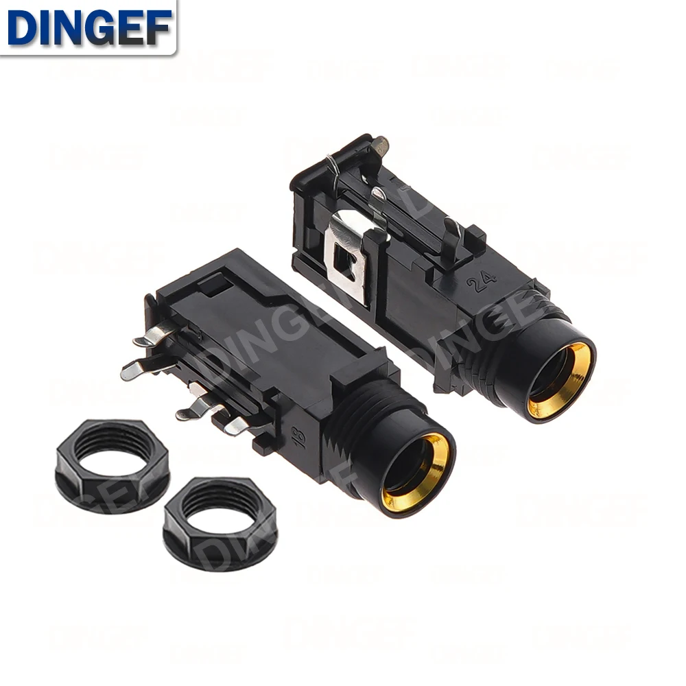 Comprar 5 uds DIY 6,35mm/6,5mm Jack chapado en oro 4P estéreo micrófono de doble canal enchufe 6,35/6,5 conector Jack recto de Audio