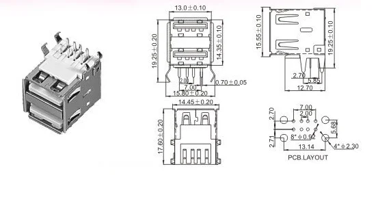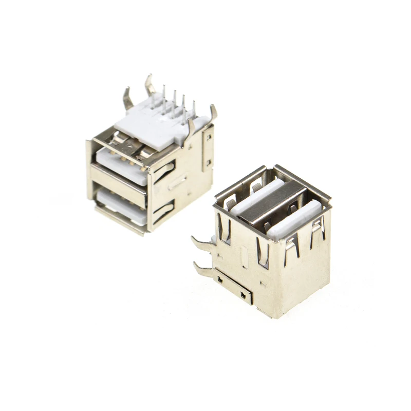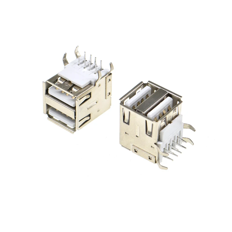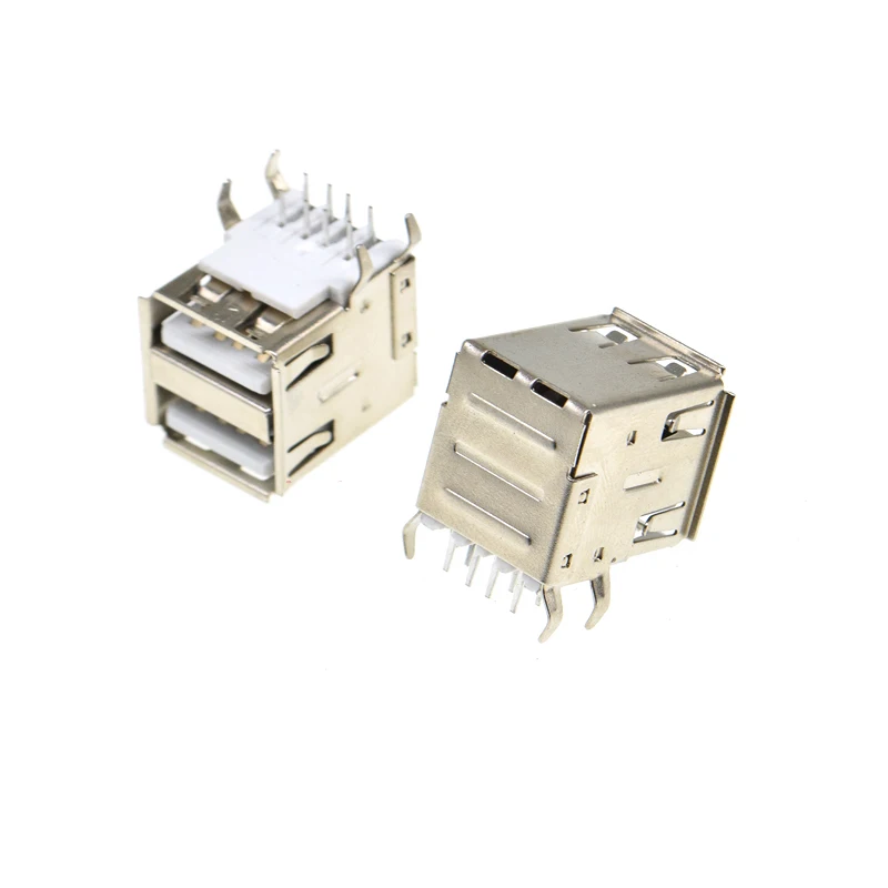 Comprar 5 uds doble USB tipo A hembra conectores de soldadura conector PCB USB-A tipo 90 grados 4 pines