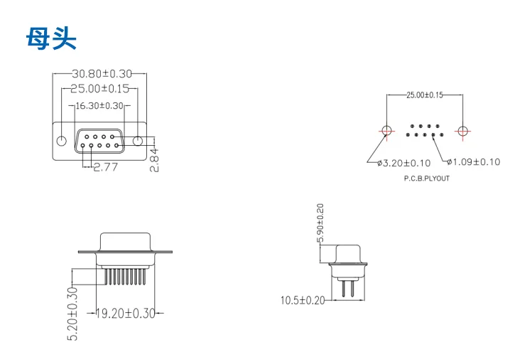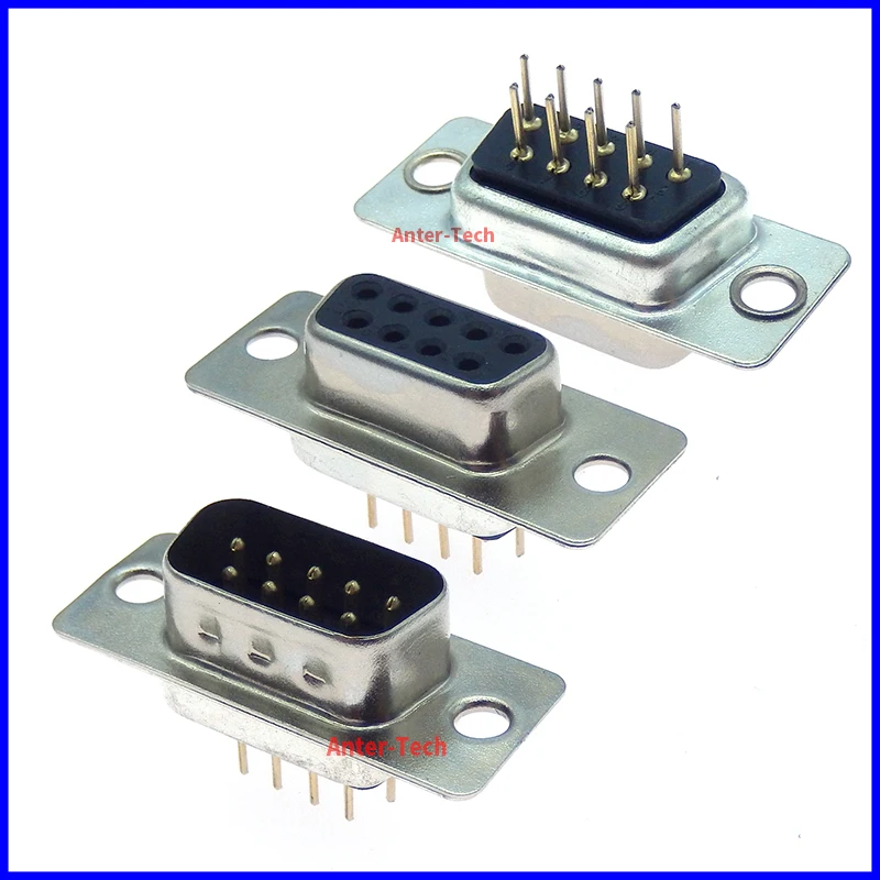 5 uds DP9 macho hembra PCB montaje puerto serie CONECTOR placa de inserción tipo D-Sub RS232 COM CONECTORES enchufe de 9 pines adaptador 9p para PCB