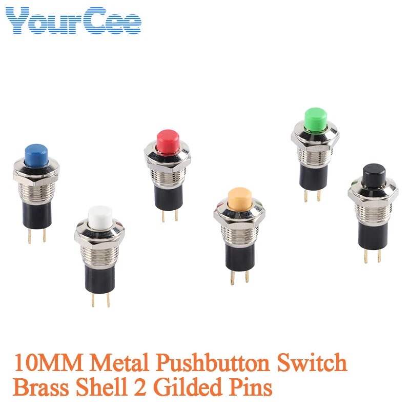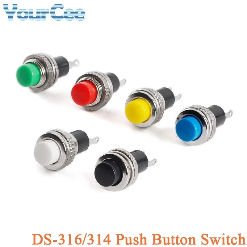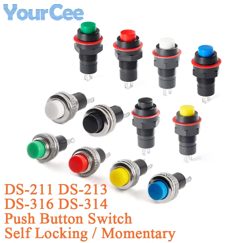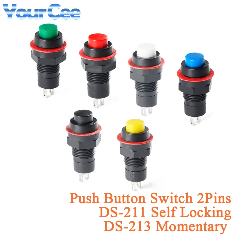 Comprar 5 uds DS-211 DS-213 DS-316 DS-314 interruptor de botón autobloqueo momentáneo 10mm Micro interruptor de botón redondo en miniatura 2 pines