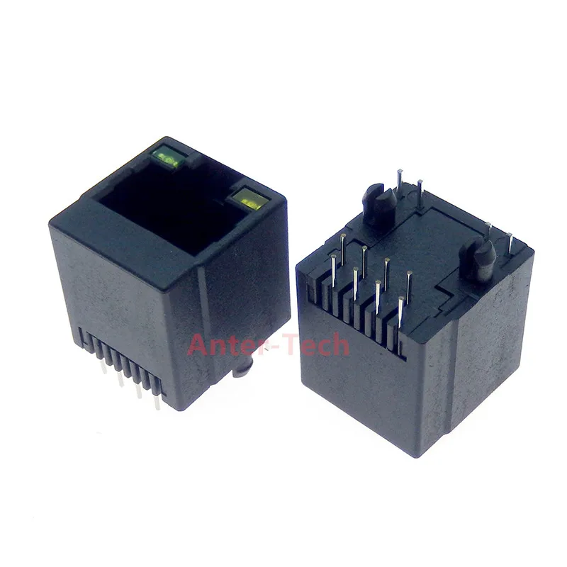 Comprar 5 uds enchufe de red RJ45 con lámpara LED interfaz de cabeza de cristal puerto de red 8P8C carcasa de cobre Vertical 180 grados