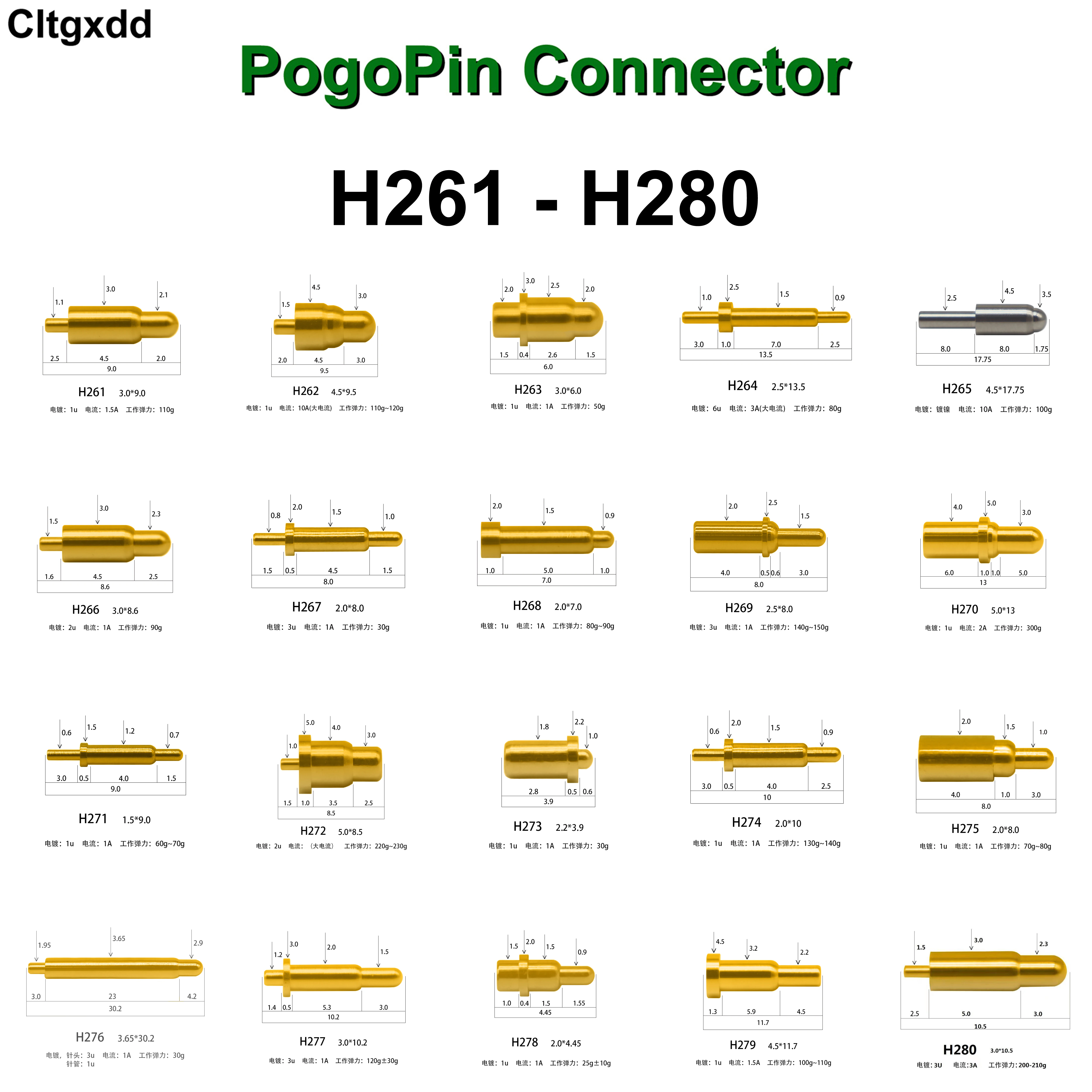 5 uds H261-H280 1.5A 10A 1A 3A conector de Pin Pogo batería de Pogopin con resorte contacto SMD aguja PCB 3,0 4.5 2,5 2,0 5,0 1,5